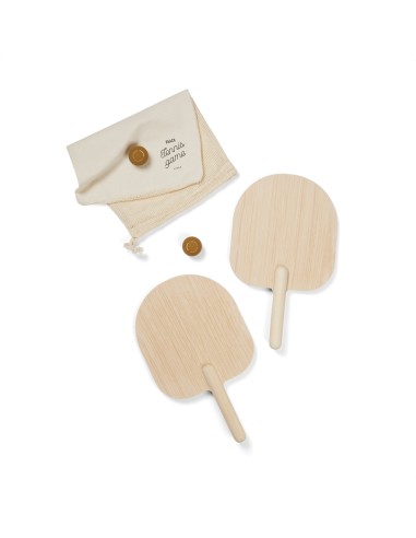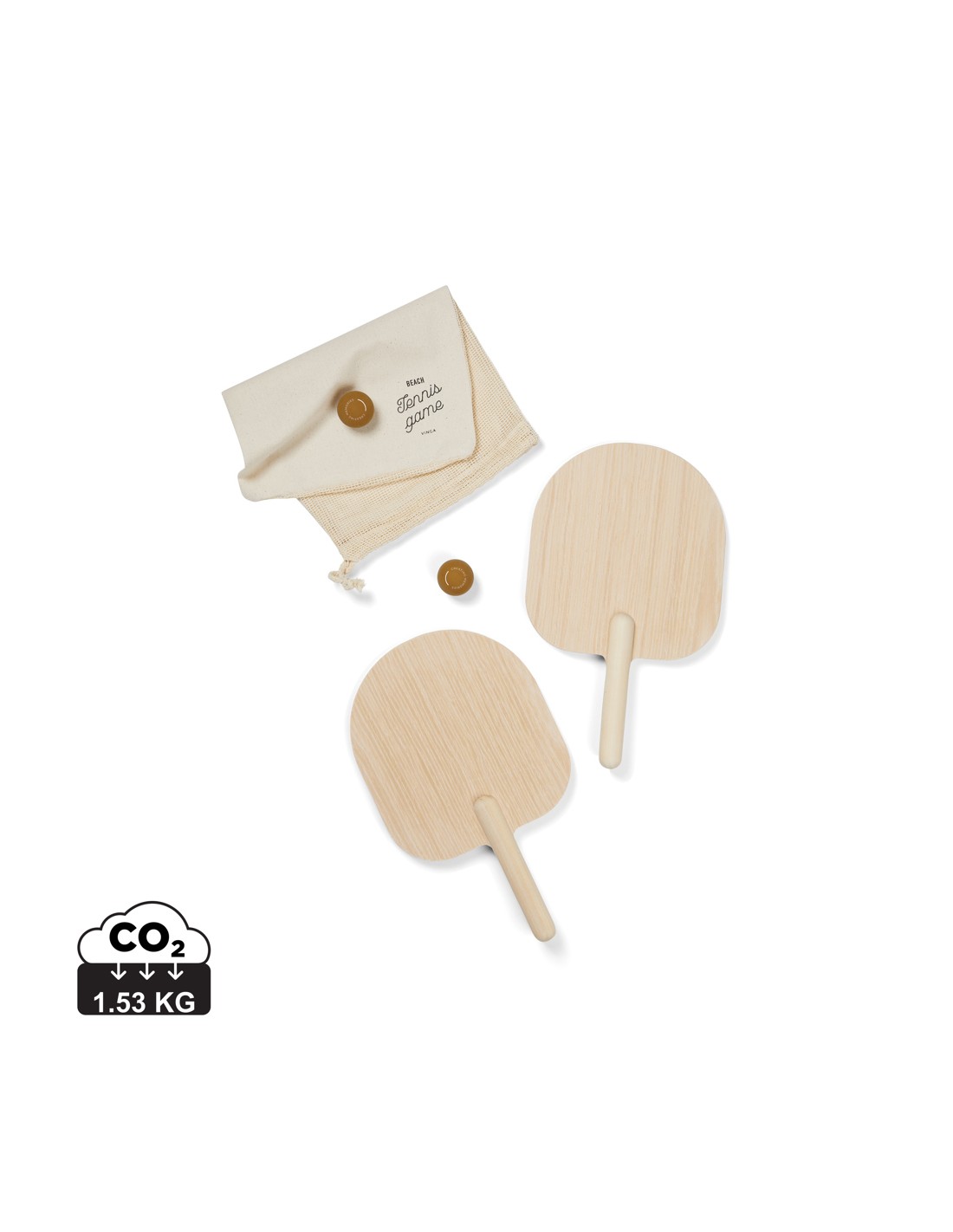 Il beach tennis è un gioco di racchette molto popolare, facile da imparare e adatto sia agli adulti che ai bambini. Un'attività divertente da praticare in spiaggia, al parco o a casa in giardino. Sono incluse due racchette e due palline di gomma e il gioco viene fornito in una custodia di cotone con una rete nella parte posteriore che lo rende facile da portare con sé. Questo gioco non è destinato all'uso in acqua. Le racchette sono realizzate in compensato di alta qualità certificato FSC®, che garantisce un legno proveniente da foreste gestite in modo responsabile. Dimensione racchetta: 35x21 cm.