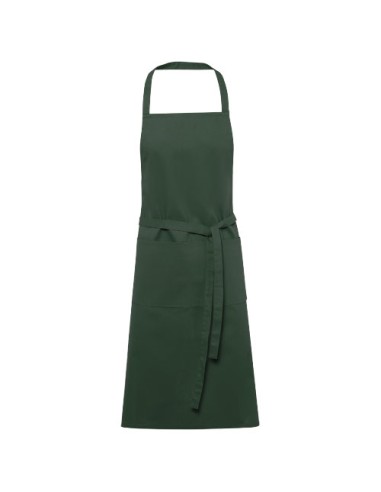 Grembiule sostenibile realizzato in cotone biologico da 200 g/m². Dispone di 2 tasche adiacenti con una dimensione combinata di 45 x 20 cm e di un'allacciatura posteriore da 1 metro. Lunghezza del laccetto per il collo: 55 cm.