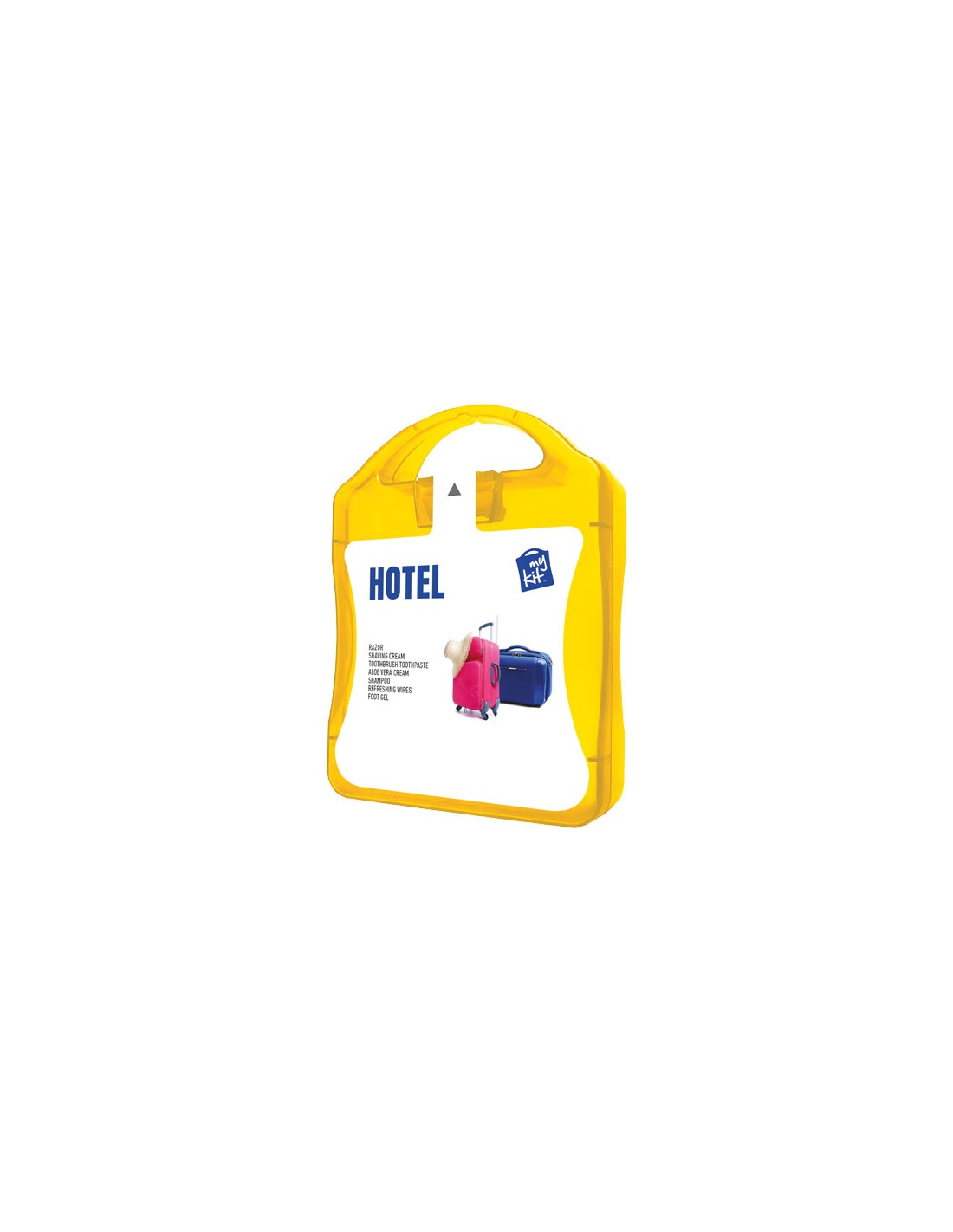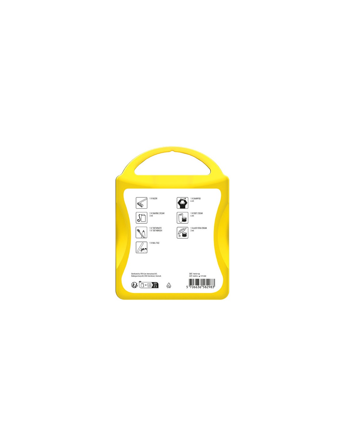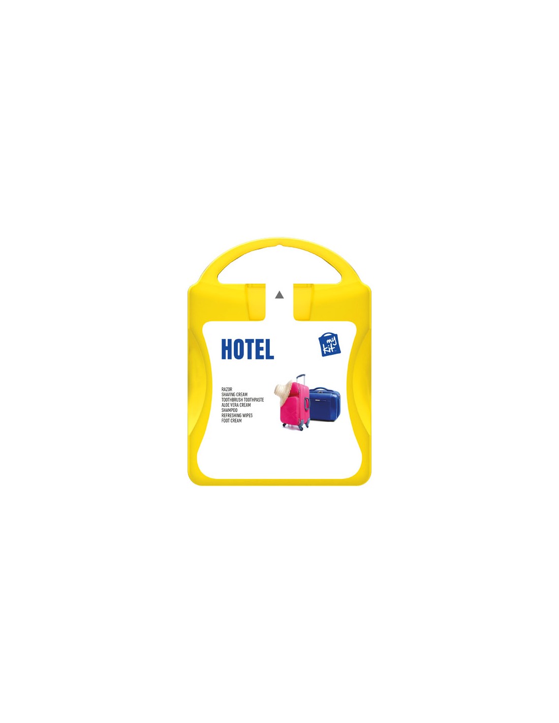 Il set di cortesia per hotel MyKit è ideale per i viaggi d'affari o per le lunghe giornate trascorse in fiera. Contenuto: 1 rasoio, 1 gel da barba, 1 crema all'aloe vera, 1 shampoo, 1 gel per piedi, 1 lima per unghie, 1 spazzolino e 1 dentifricio. Tutti i prodotti del kit per il pronto soccorso e per la cura del corpo sono conformi a tutte le normative UE vigenti. Prezzo incluso della stampa a colori.