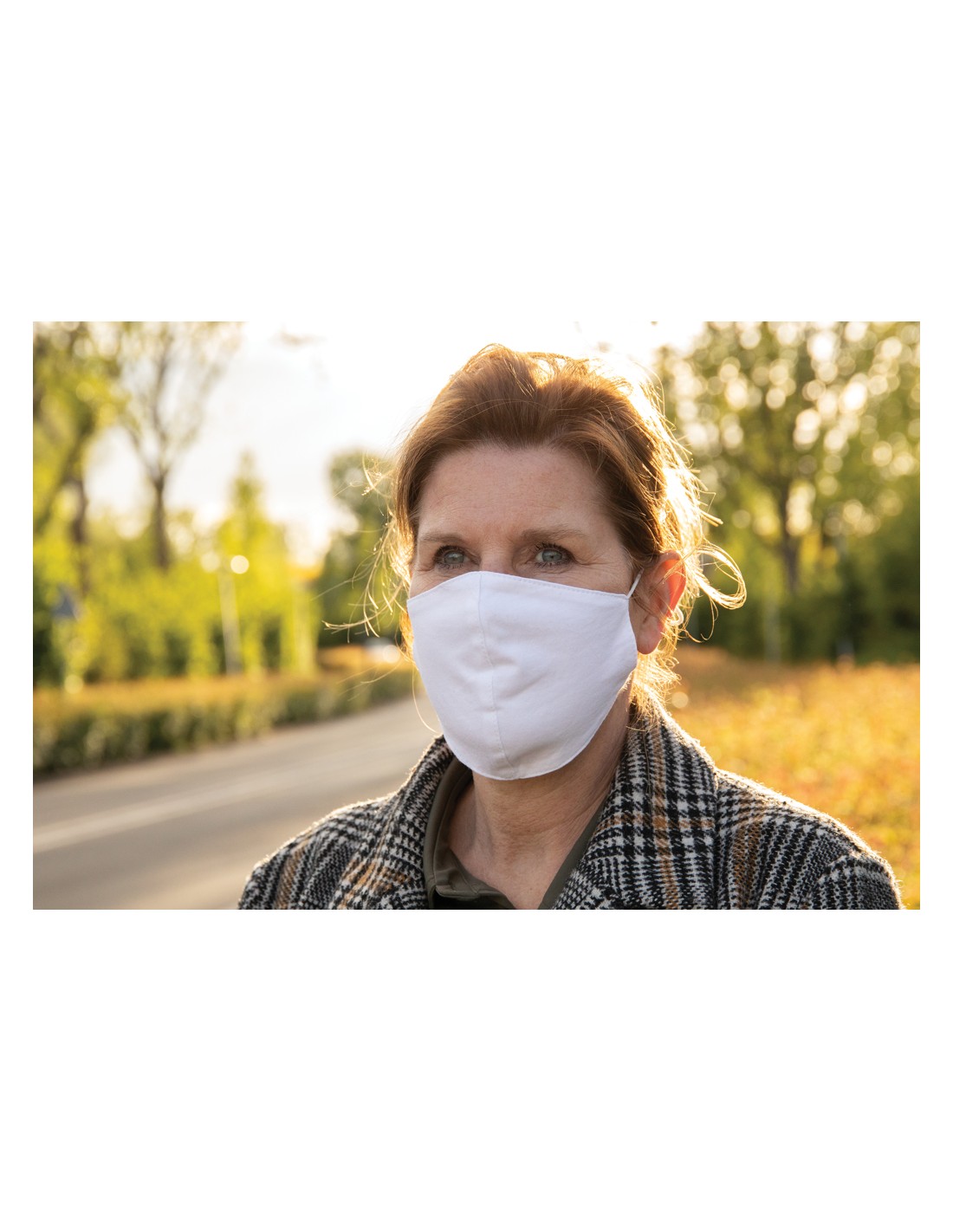 Questo distanziatore sociale in cotone a 2 strati da 320 g/m2 é progettato per aderire ad ogni viso. Indossandola eviterai di toccarti bocca e naso con le mani. Riduce anche l'emissione di saliva mentre parli, starnutisci o tossisci. Il suo design garantisce resistenza e comfort grazie agli elastici da orecchio regolabili. Filtraggio >70%. Lavabile in lavatrice a 60°. Non è un dispositivo medico ai sensi del Regolamento UE/2017/745 (maschere chirurgiche) né un dispositivo di protezione individuale ai sensi del Regolamento UE/2016/425 (maschere filtranti tipo FFP2). Queste mascherine sono state disegnate e prodotte in osservanza del CEN Workshop Agreement: CWA 1755