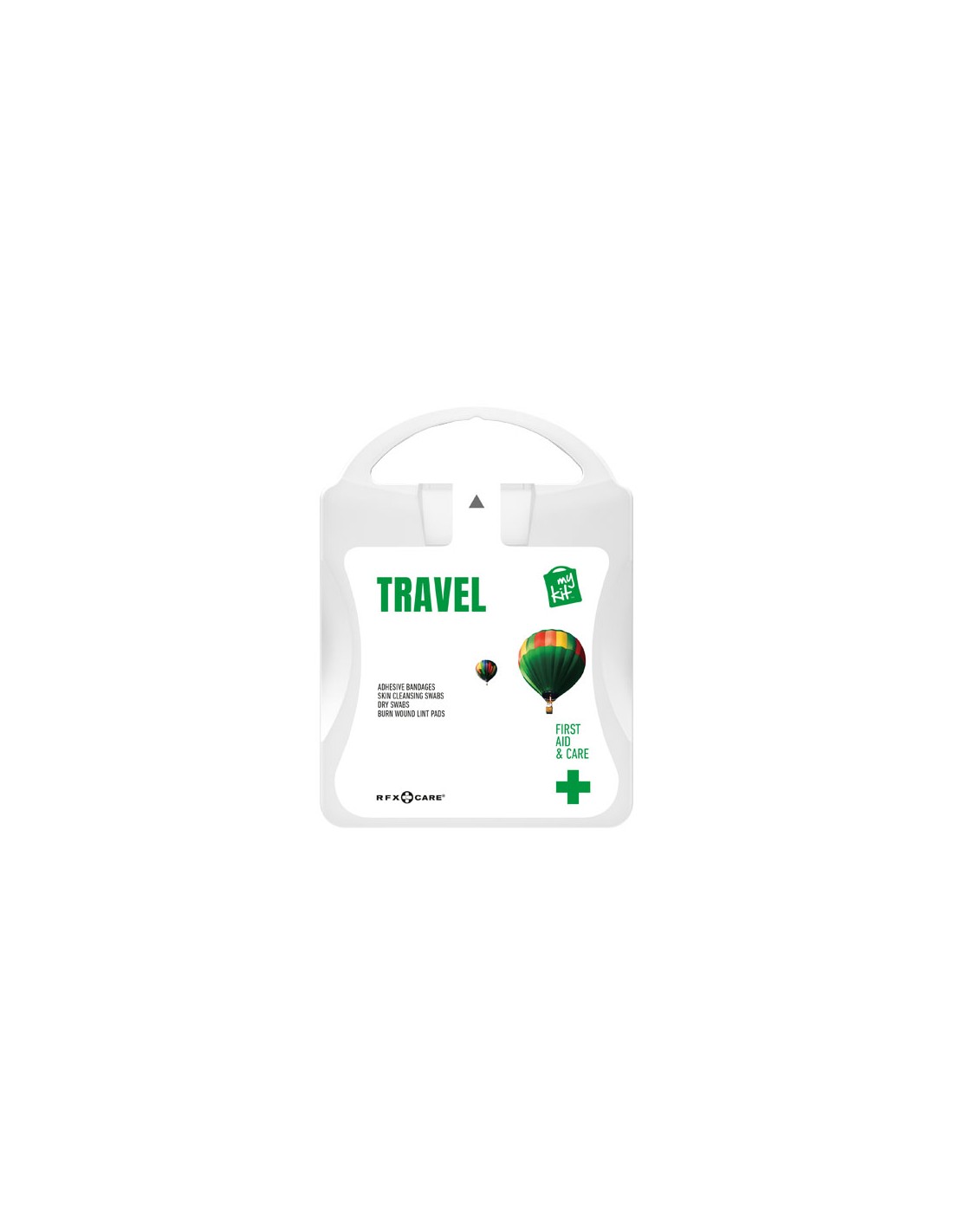 Il kit base per chi viaggia. Con questo kit sarete preparati ad ogni piccolo inconveniente durante i vostri viaggi. Contenuto: 12 cerotti resistenti all'acqua, 4 salviettine disinfettanti, 2 garze sterili, 2 garze per ustioni. Tutti i prodotti contenuti nei MyKit rispettano le norme Europee vigenti. I prezzi includono stampa all-over fronte e retro.