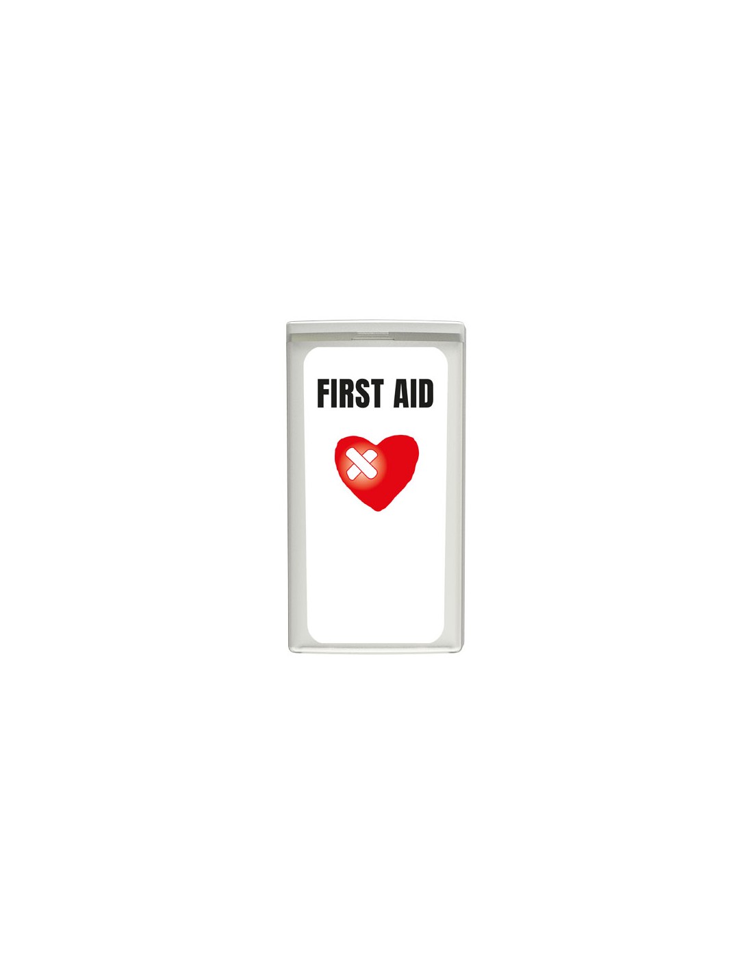 Il kit di primo soccorso compatto ideale. Le dimensioni di questo kit consentono di portarlo sempre con voi. Con questo kit sarete preparati per i piccoli incidenti. Contenuto: 5 cerotti resistenti all'acqua, 2 salviettine disinfettanti. Tutti i prodotti contenuti nei MyKit rispettano le norme Europee vigenti. I prezzi includono stampa all-over fronte e retro.