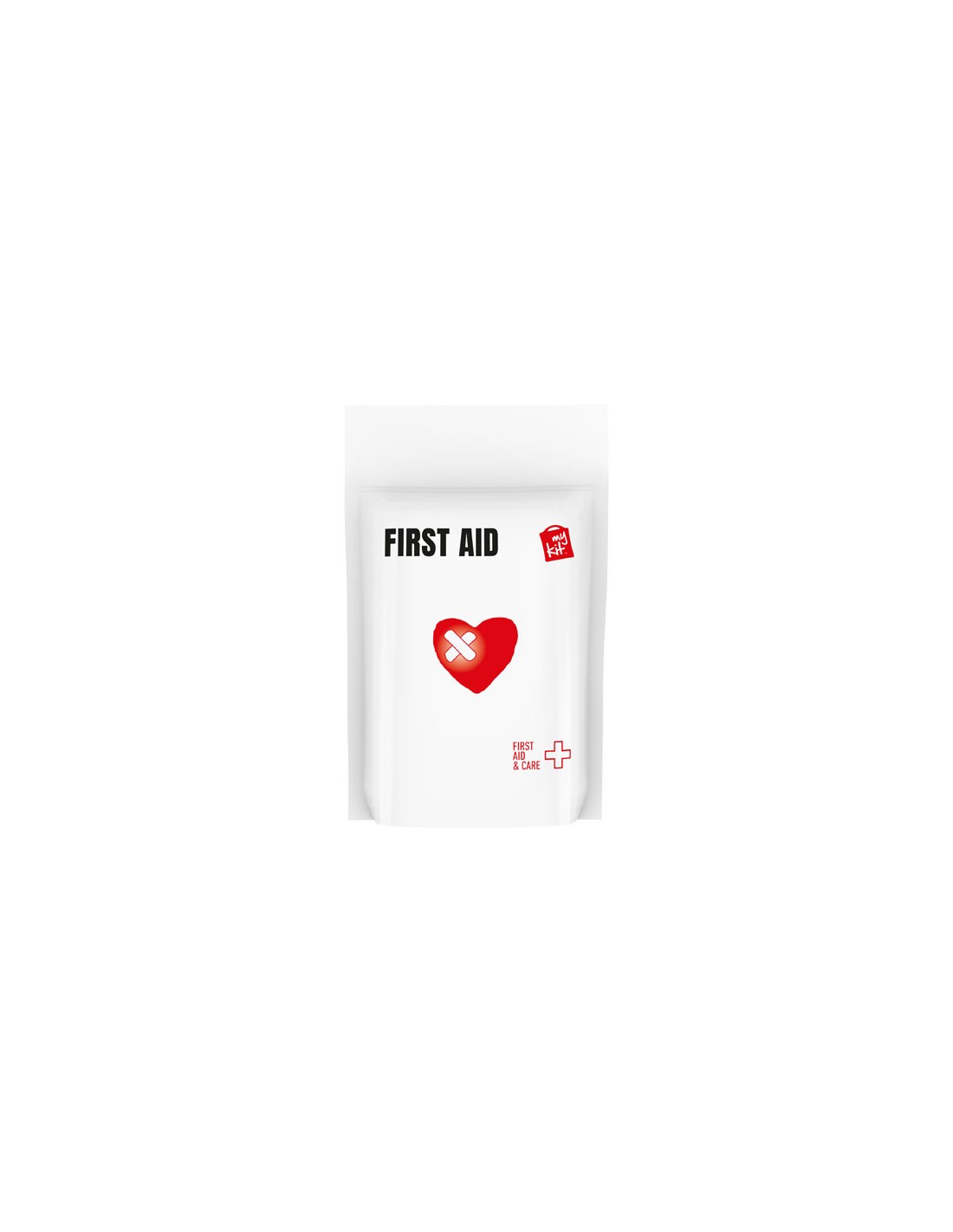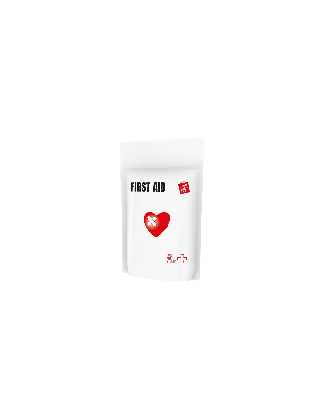 Il kit di primo soccorso compatto ideale. Le dimensioni di questo kit consentono di portarlo sempre con voi. Con questo kit sarete preparati per i piccoli incidenti. Contenuto: 5 cerotti resistenti all'acqua, 2 salviettine disinfettanti. Tutti i prodotti contenuti nei MyKit rispettano le norme Europee vigenti. I prezzi includono stampa all-over fronte e retro. Fornito in una custodia di carta.