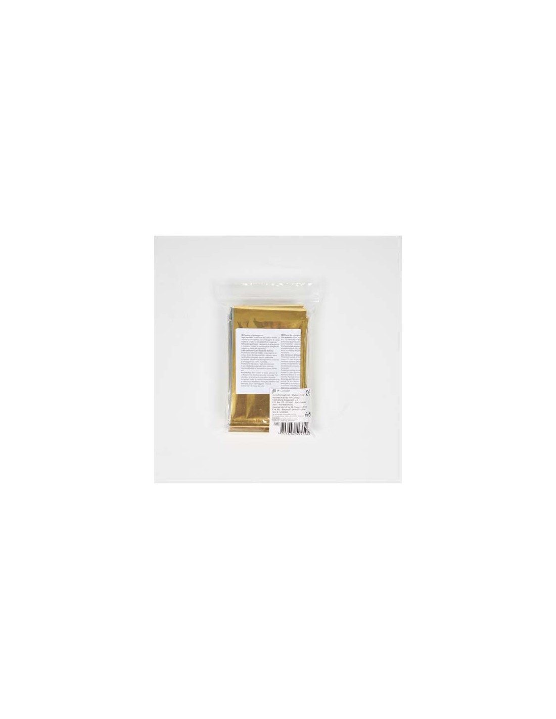 Coperta di emergenza in grado di fornire protezione contro il caldo, il freddo e l'umidità. Perfetta per attività di campeggio, eventi sportivi e situazioni di emergenza. Quando il lato argentato è rivolto verso il corpo, offre protezione contro il freddo. Mentre il lato dorato mantiene al fresco. La dimensione della coperta è di 160 x 210 cm. La coperta è regolata, testata e certificata come dispositivo medico di Classe I in conformità alla direttiva sui dispositivi medici MDD 93/42/CEE del 14 giugno 1993.
