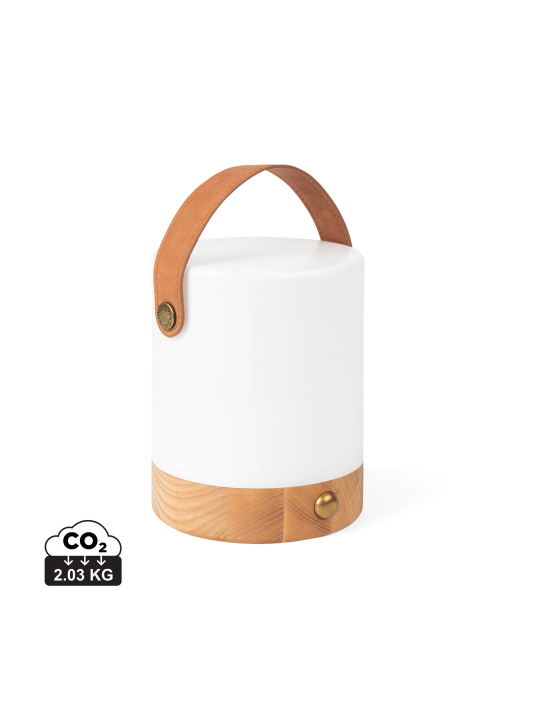 Questa lanterna portatile e contemporanea è perfetta per ogni occasione. Questa lampada offre una confortevole luce bianca calda con due modalità di illuminazione. È possibile regolare facilmente la luminosità con un solo tocco. Il pratico cinturino in PU la rende facile da portare a un picnic, in giardino o ovunque si voglia aggiungere un tocco originale. Il design elegante la rende un elemento decorativo unico nel suo genere. Questa lampada fornisce fino a 8 ore di luce. Realizzata in ABS riciclato e legno di acacia. Ricaricabile tramite il cavo type C incluso. La certificazione RCS (Recycled Claim Standard) garantisce che l'intera catena di approvvigionamento dei materiali riciclati sia certificata. Il contenuto riciclato totale si basa sul peso totale del prodotto. Questo prodotto contiene il 5% di ABS riciclato certificato RCS.