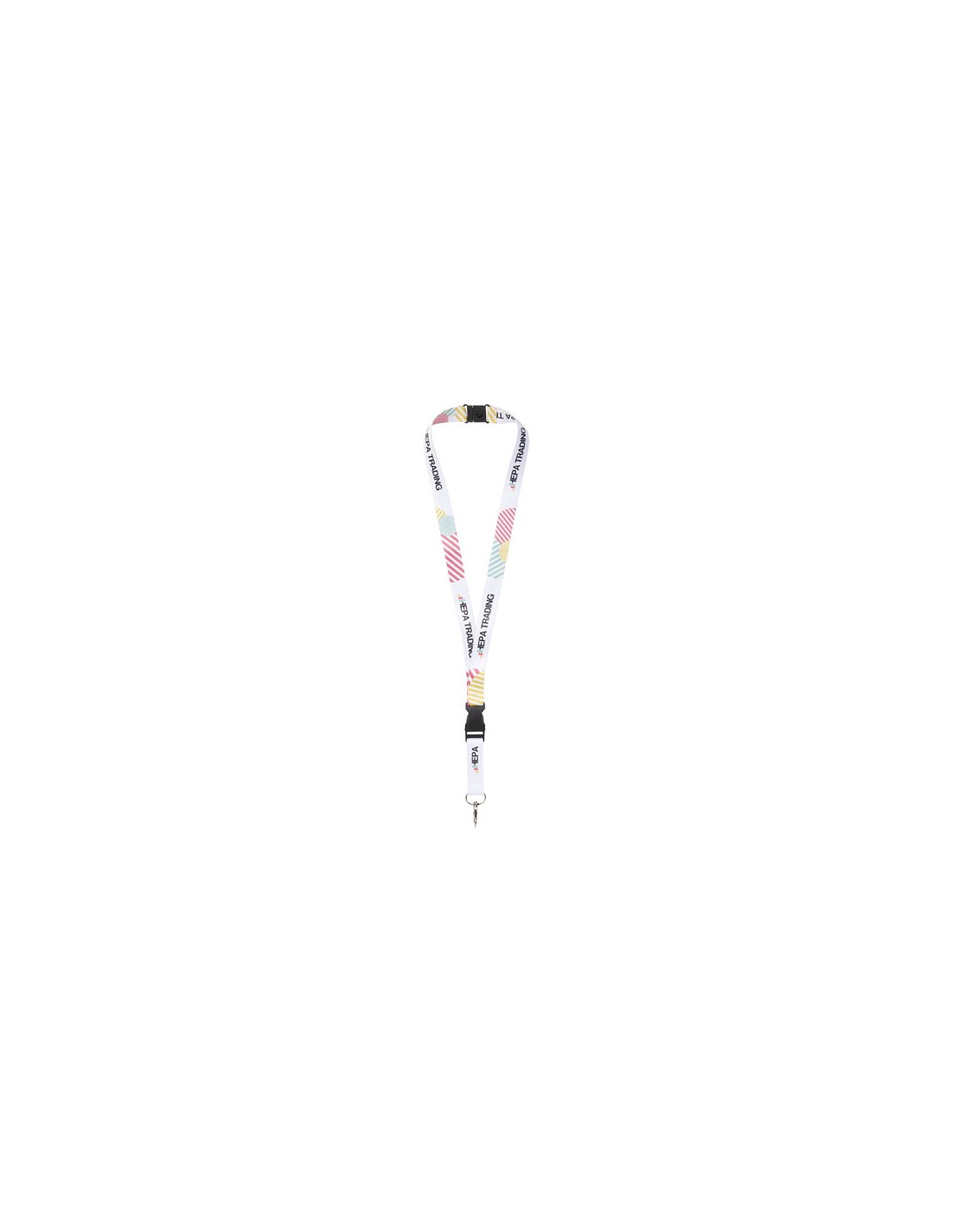Lanyard Balta con stampa in sublimazione. Disponibile con stampa full color su uno o due lati. Per stampa su due lati è possibile scegliere tra sublimazione standard o piazzata (piazzata significa che la stampa sarà allineata su entrambi i lati). Perfetto per agganciare badge, tesserino identificativo o chiavi. Dotato di moschettone in metallo, fibbia in plastica e sgancio di sicurezza. Disponibile in quattro misure differenti: 10, 15, 20 e 25mm.
