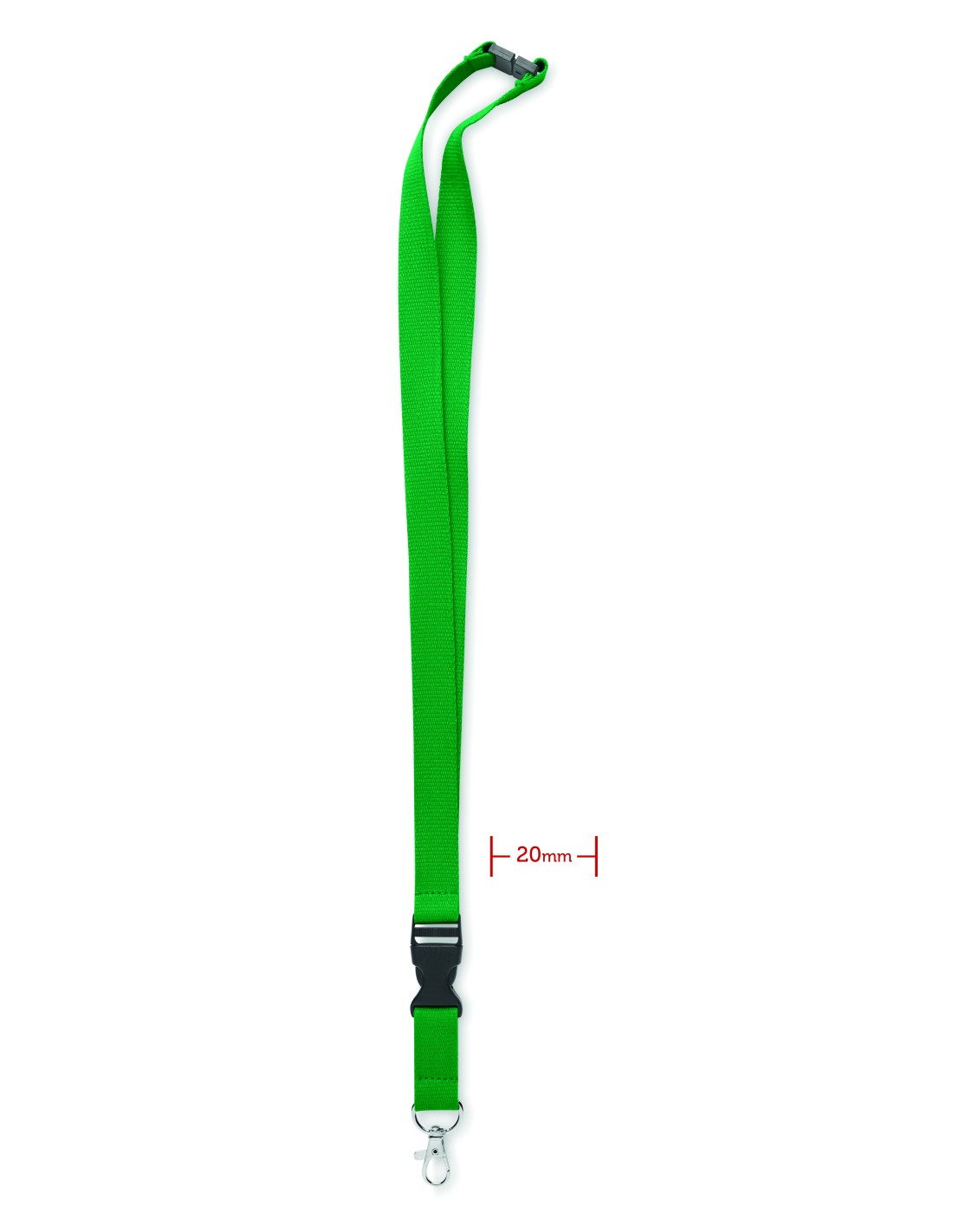Cordino in cotone con gancio in metallo, fibbia staccabile e chiusura di sicurezza. Larghezza 20 mm.