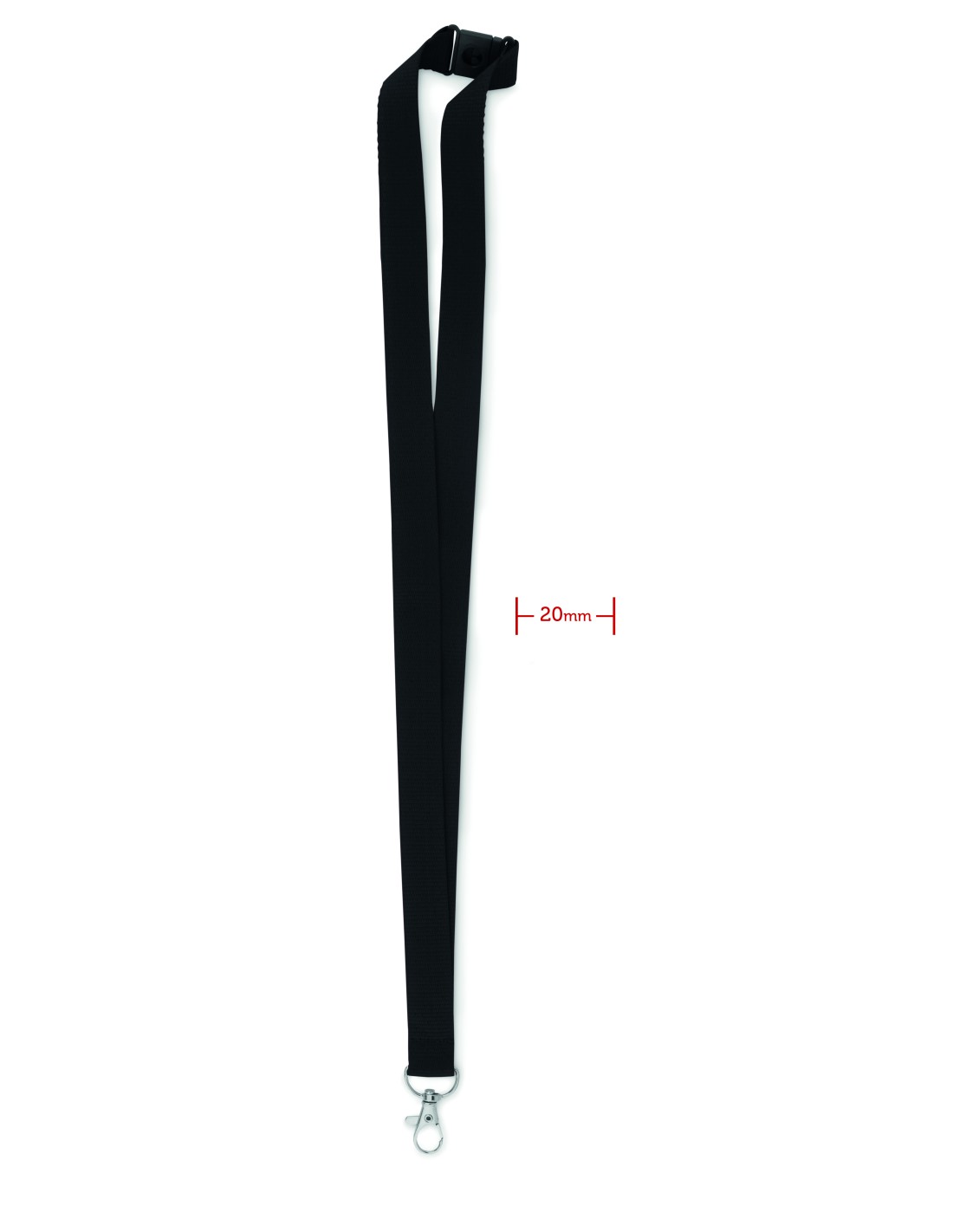 Lanyard con gancio in metallo e meccanismo di sicurezza. 20mm. Stampa in sublimazione disponibile sono sull’articolo di colore bianco.