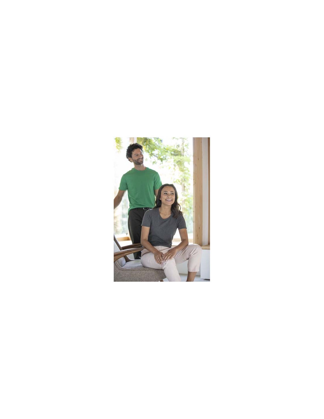 T-shirt a maniche corte da donna. Finitura con lavaggio acido. Girocollo a costine 1x1 e cuciture laterali. Copertura tono su tono sulle cuciture del collo.