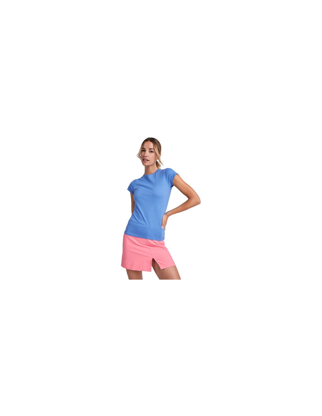 T--shirt aderente a maniche corte da donna in cotone biologico certificato OCS. Girocollo a costine 1x1. Copri cuciture rinforzate sul colletto. Etichetta rimovibile.
