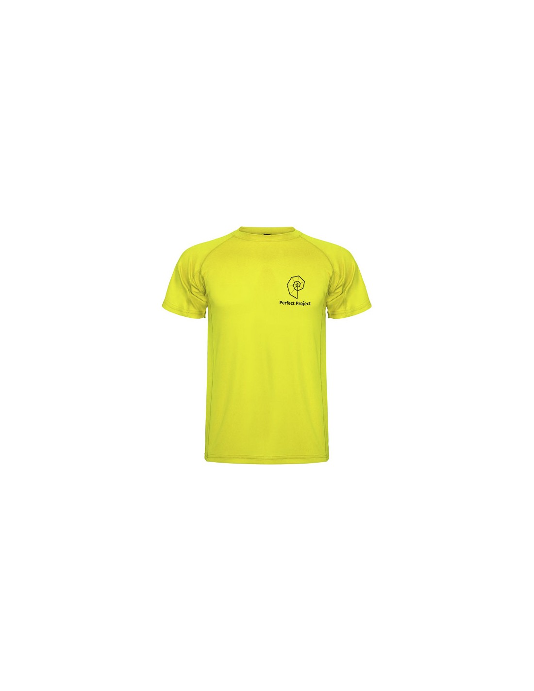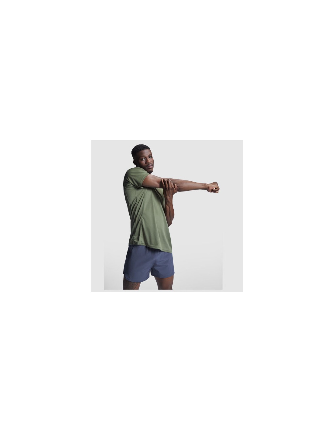 T-shirt a maniche corte con girocollo a doppio strato in elastan, realizzata in tessuto tubolare per adulti. Copri cuciture rinforzate sul colletto. Etichetta rimovibile. Il modello è alto 190 cm ed indossa una taglia L.