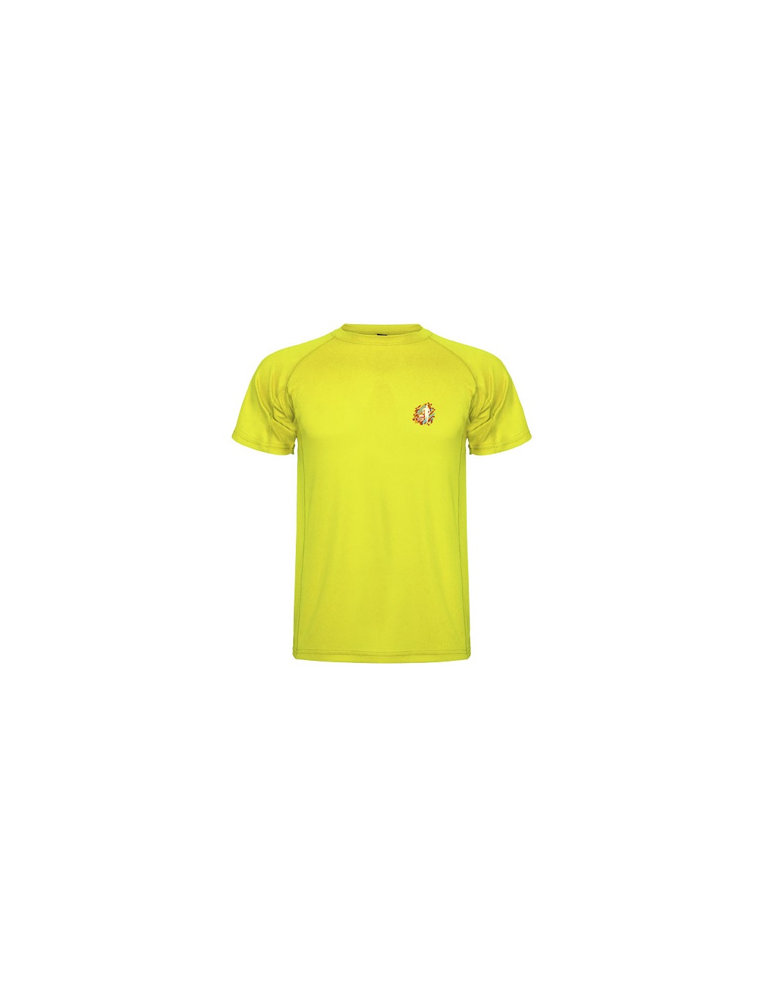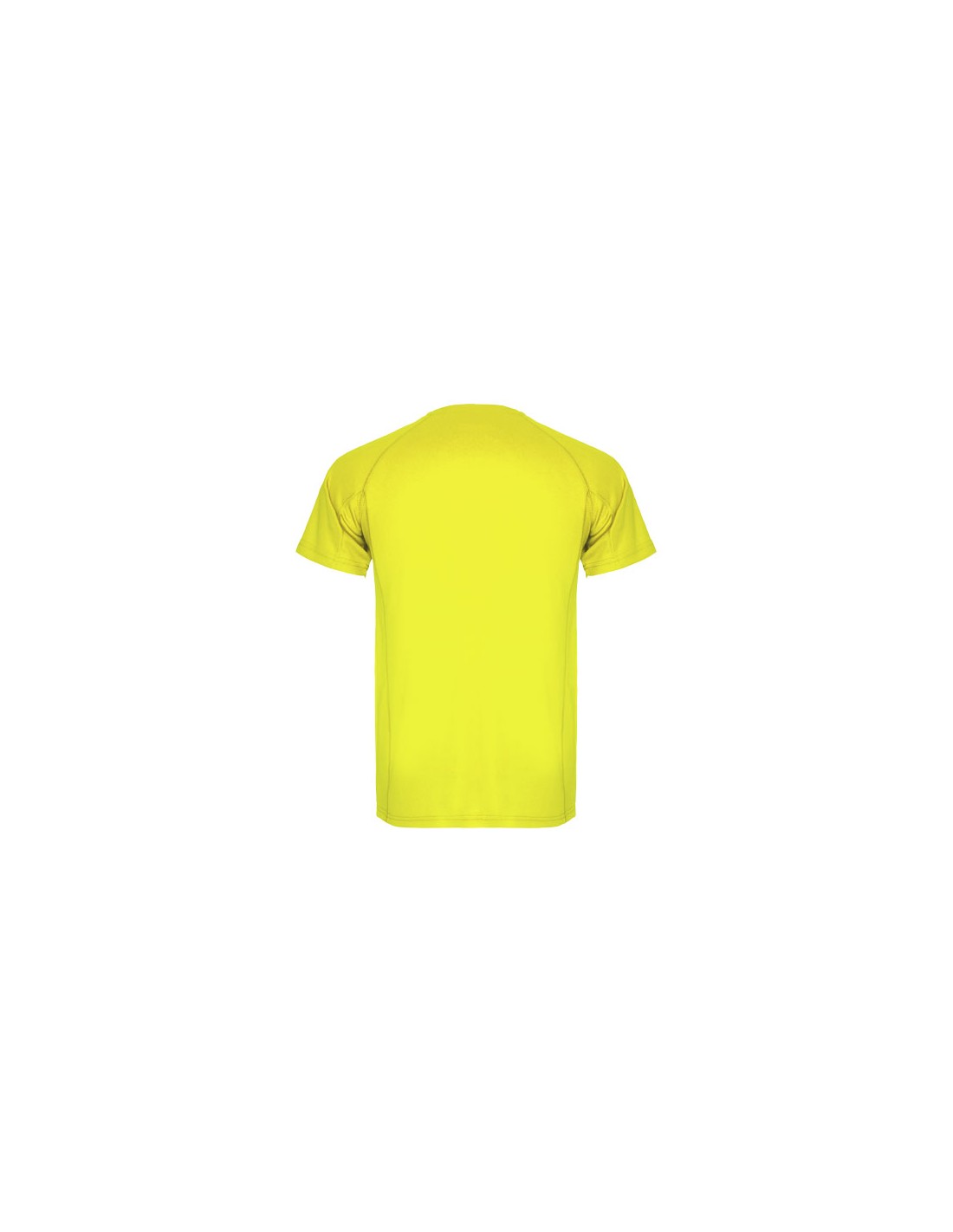 T-shirt tecnica a maniche corte da bambino. Collo con cuciture abbinate. Orlo posteriore leggermente più lungo di quello anteriore. Cuciture laterali spostate in avanti.