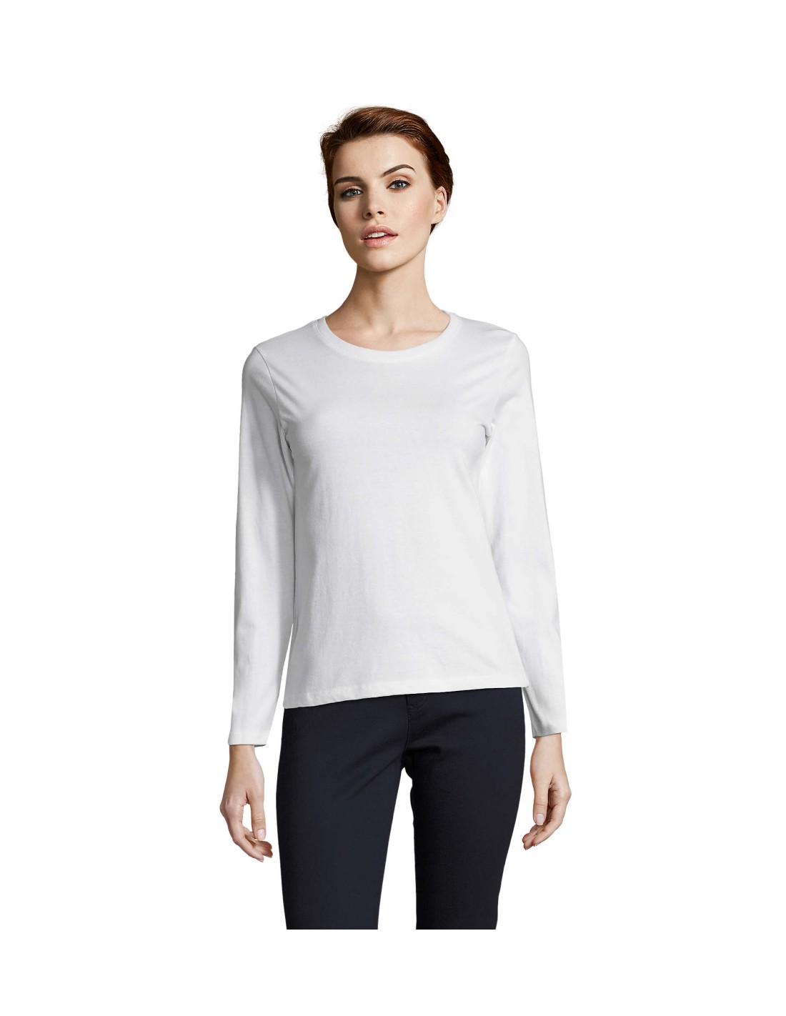 SOL'S IMPERIAL, maglietta da donna 190 g. Collo a costine. Maniche lunghe. Tagliata e cucita. Taglio aderente. Nastro all'interno del collo. Dettagli del tessuto: 100% cotone semi-pettinato ring-spun. Per informazioni sulle taglie, consultare la tabella delle taglie nella sezione documentazione del prodotto.