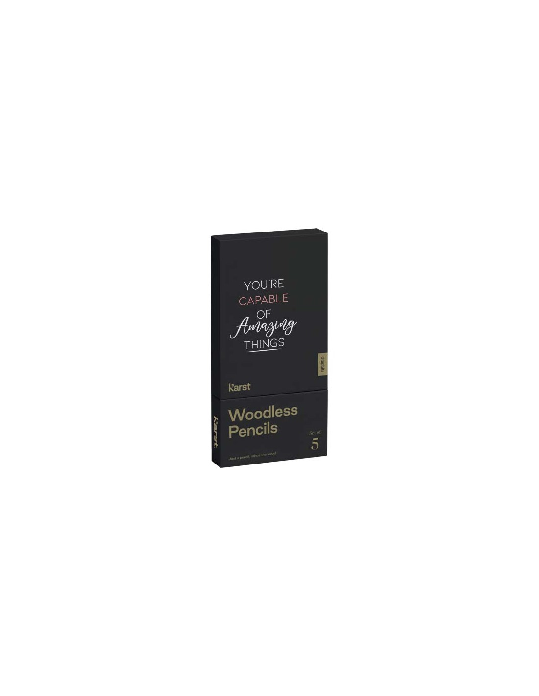 Set di 5 matite in grafite che offrono una durata 5 volte superiore. Il fusto privo di legno può essere temperato per scrivere linee nitide, oppure spuntato per realizzare tratti più espressivi o sfumature leggere. La struttura priva di legno consente un utilizzo versatile senza la produzione di scarti. La solidità di queste matite offre una sensazione piacevole quando si tengono in mano per scrivere o per disegnare a mano libera.