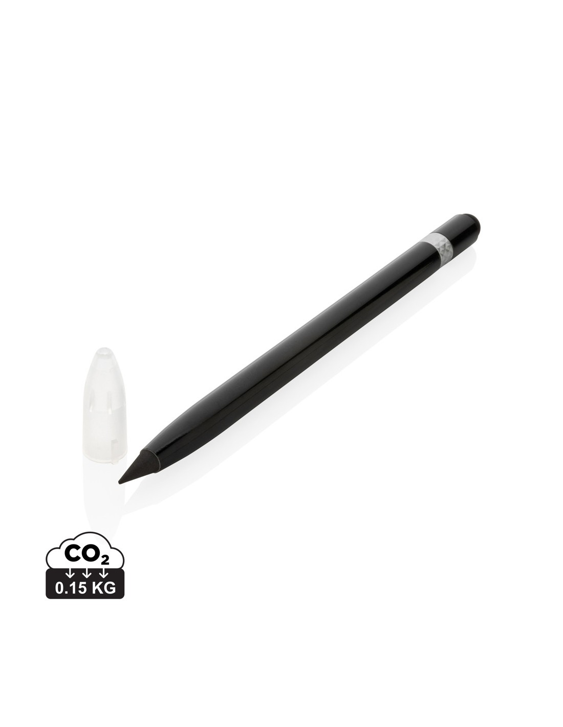 Questa penna senza inchiostro con gomma sostituisce la tradizionale matita di legno. La punta in grafite garantisce una scrittura fino a 20.000 metri. Il corpo in alluminio le conferisce un design pulito e moderno. Include una gomma per cancellare sulla parte superiore.