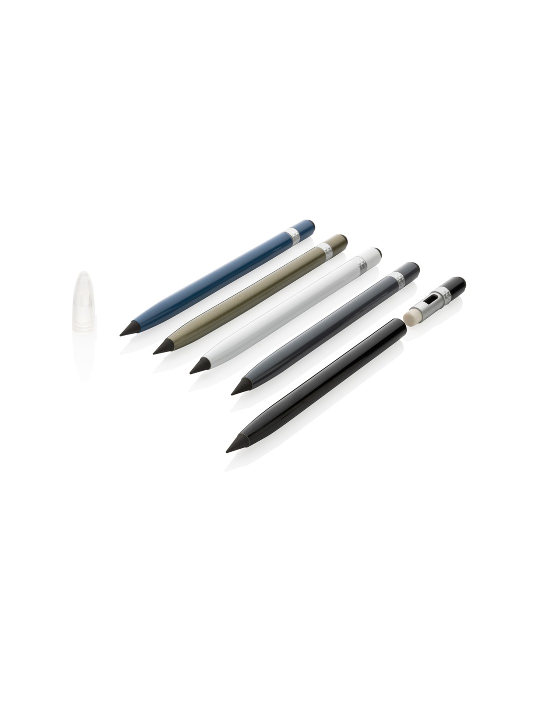 Questo set di penne dall'aspetto moderno composto da penna a sfera e matita è realizzato con bambù certificato FSC®. La penna è dotata di una ricarica di scrittura da 800 m con inchiostro blu tedesco e la matita di una mina da 0,7 mm. Confezionato in scatola regalo certificata FSC®.