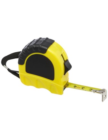 Metro a nastro da 3 m in acciaio e ferro, con clip da cintura in ferro e cinturino per il polso in poliestere. Scala in centimetri e pollici. La custodia è realizzata in plastica riciclata certificata RCS al 21% e TPE riciclato al 4%. Il Recycled Claim Standard (RCS) verifica il contenuto riciclato di un prodotto durante tutte le fasi della catena di fornitura. Confezionato all'interno di una confezione regalo STAC realizzata da fonti sostenibili.