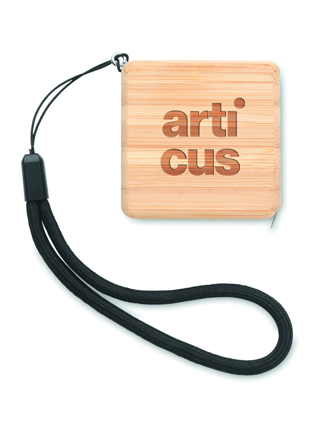Metro in ABS in colore nero e silver. Laccetto incluso, clip in metallo. Lunghezza 3mt.