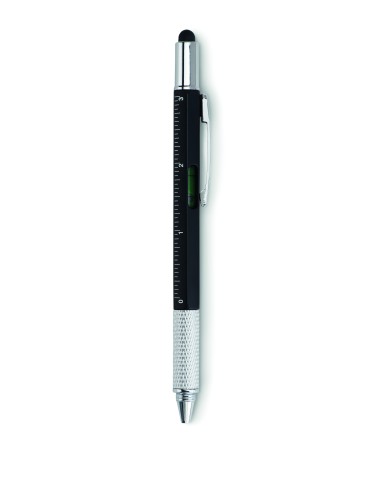 Penna in ABS con righello, livella, cacciavite e punta touch. Refill nero.