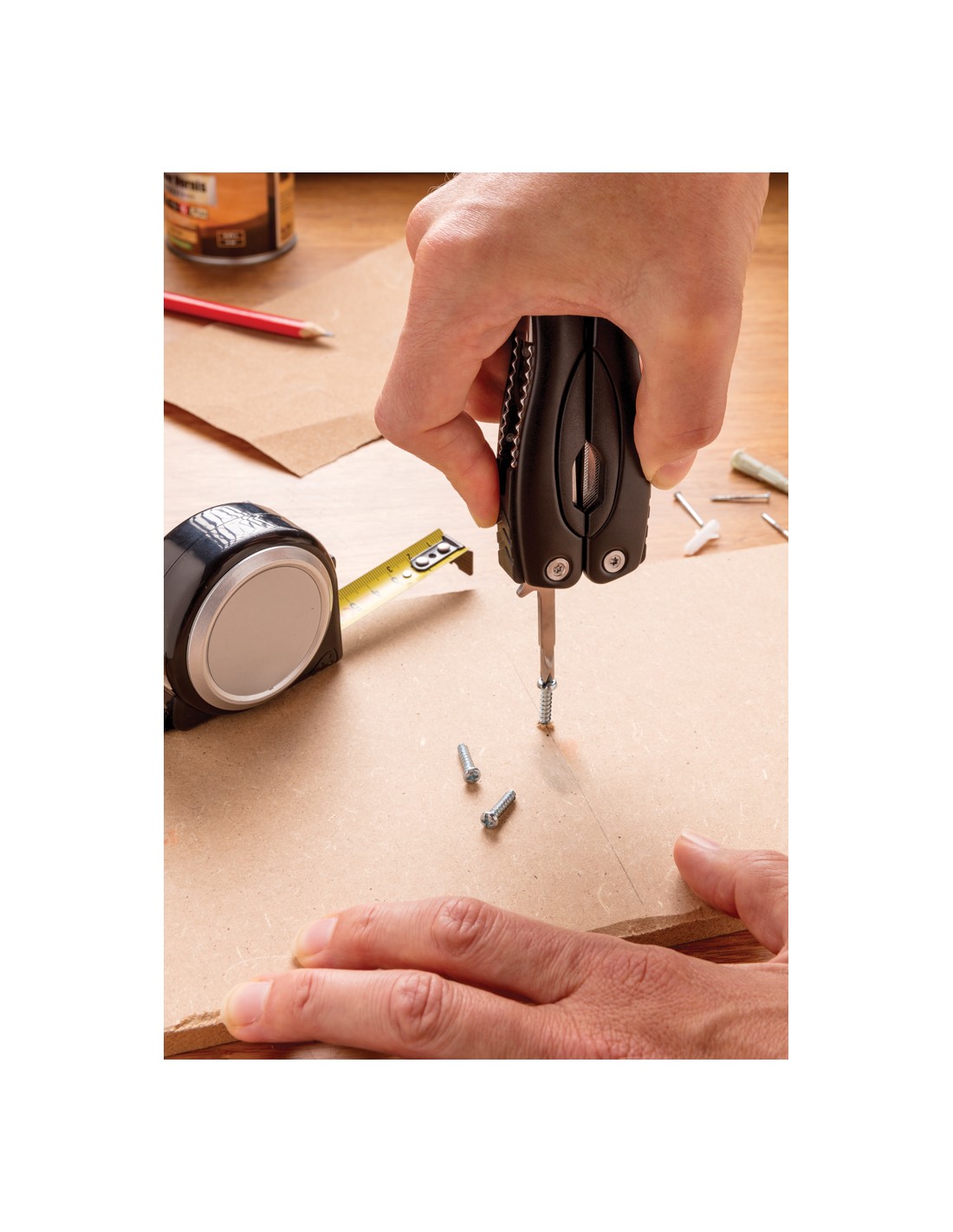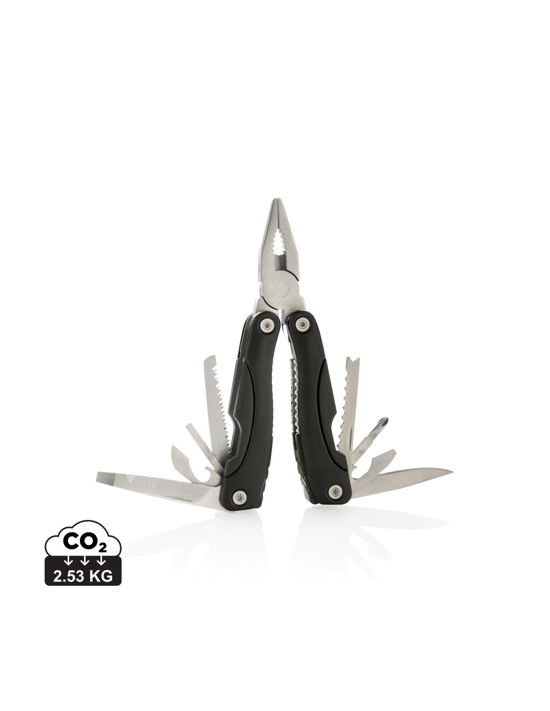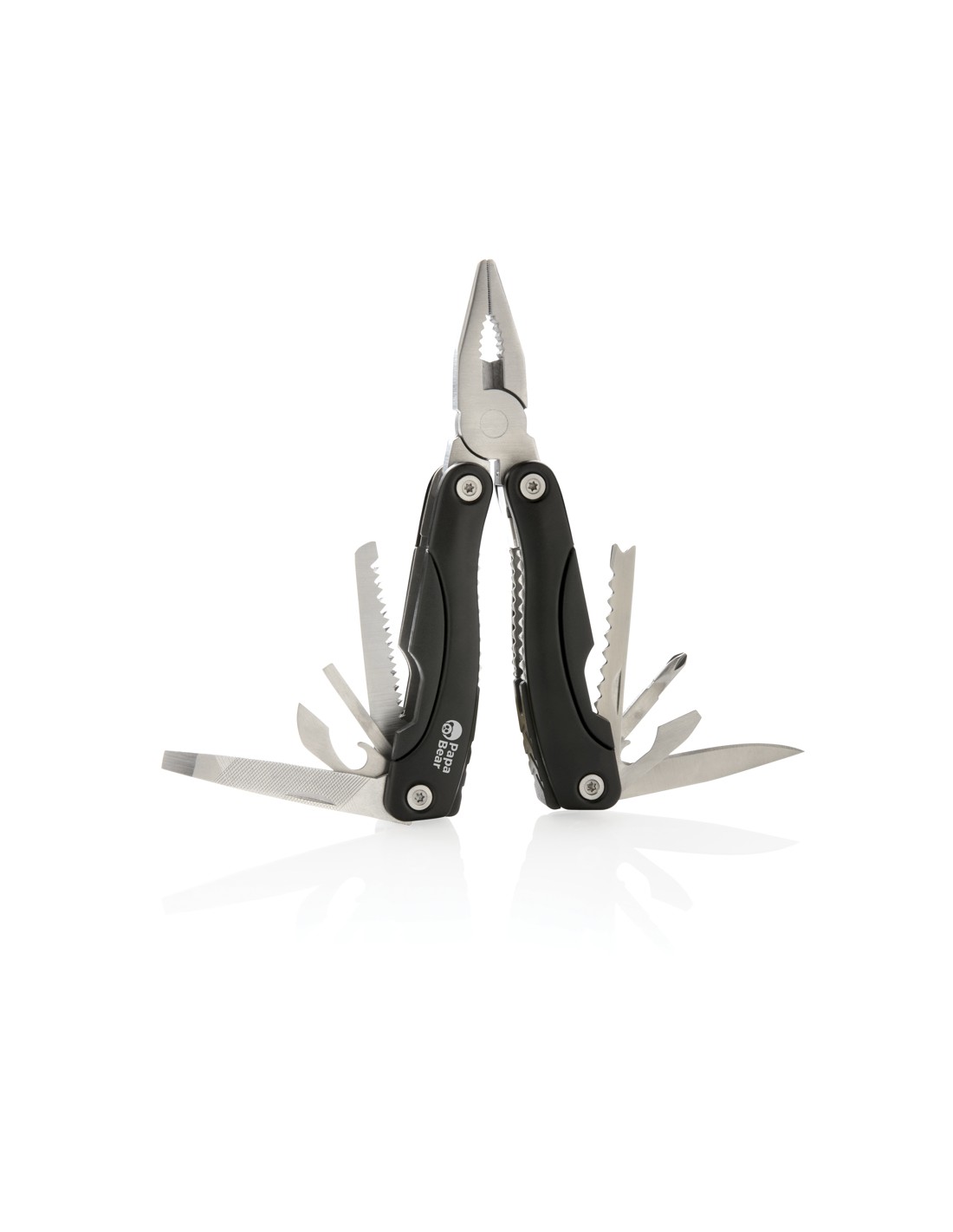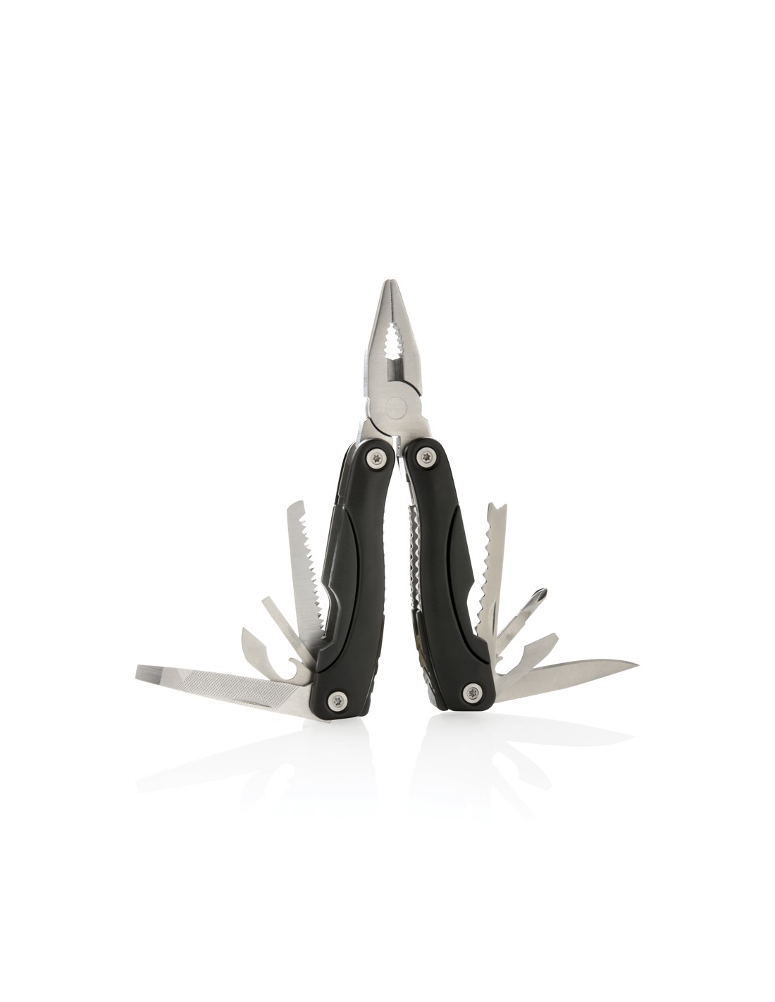 Pinza multifunzione in alluminio, impugnatura con inserti neri, 14 funzioni, confezionato in custodia nera 600D.