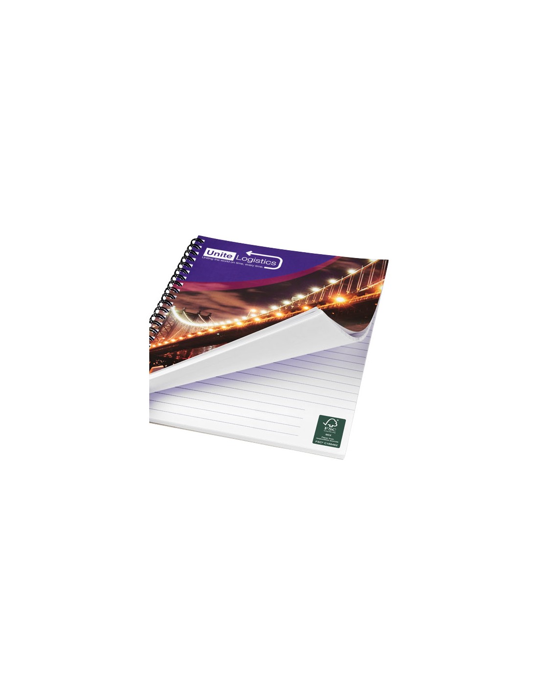 Questo blocco note A4 include un filo bianco o nero, carta in bianco da 80 g/m2 e una copertina anteriore e posteriore in cartoncino lucido (250 g/m2). Il modello standard viene fornito con 50 fogli, ma il blocco note è disponibile in versione da 80 fogli. La stampa è possibile sui fogli e sulle copertine, sia anteriore che posteriore.