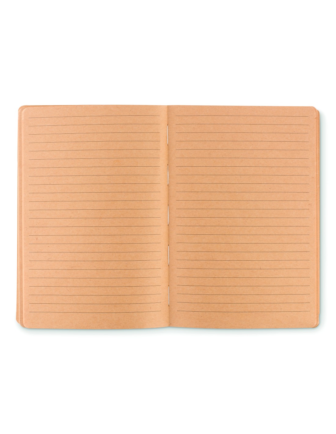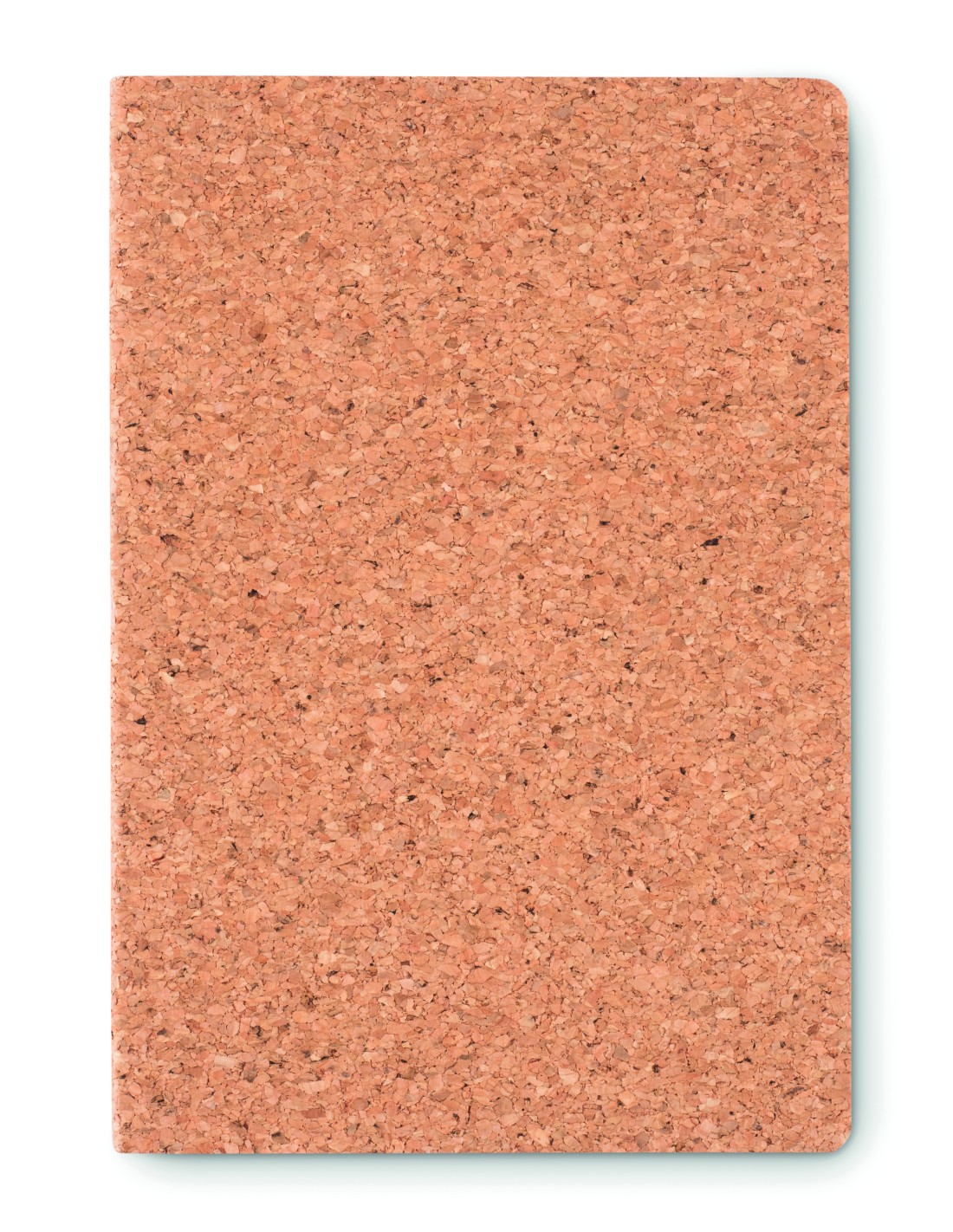 Notebook A5 con copertina in morbido sughero. 192 pagine di carta riciclata a righe (96 fogli).