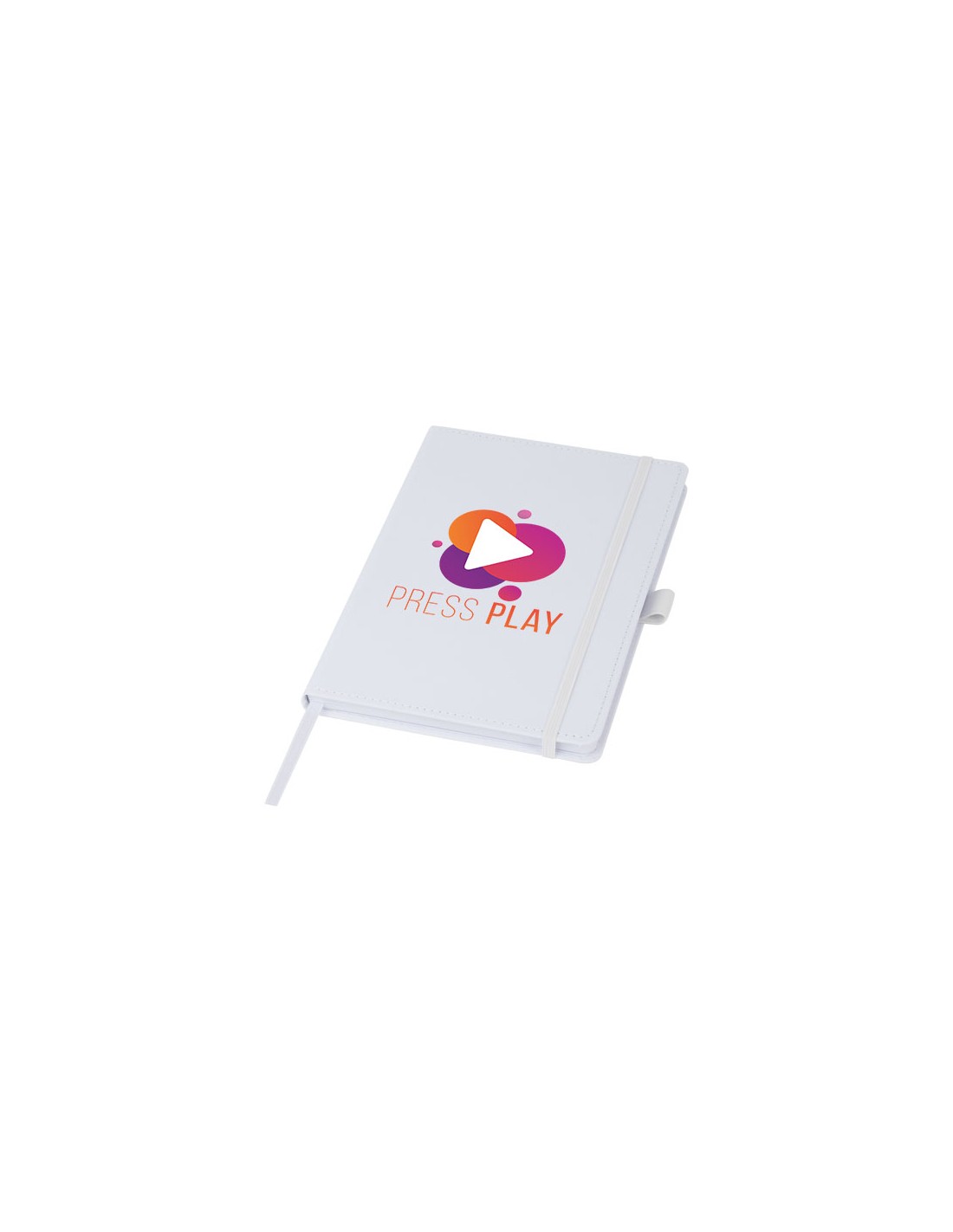 Notebook A5 con copertina rigida in PU. Rilegato con custodia. 200 pagine a righe (100 fogli) in carta riciclata (80 gr/m²). Laccetto elastico di chiusura e nastro segnapagina abbinati. Prodotto in UE.