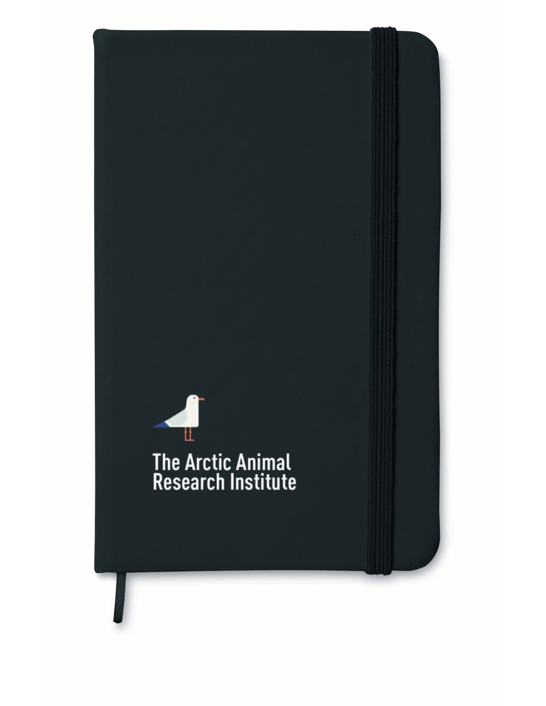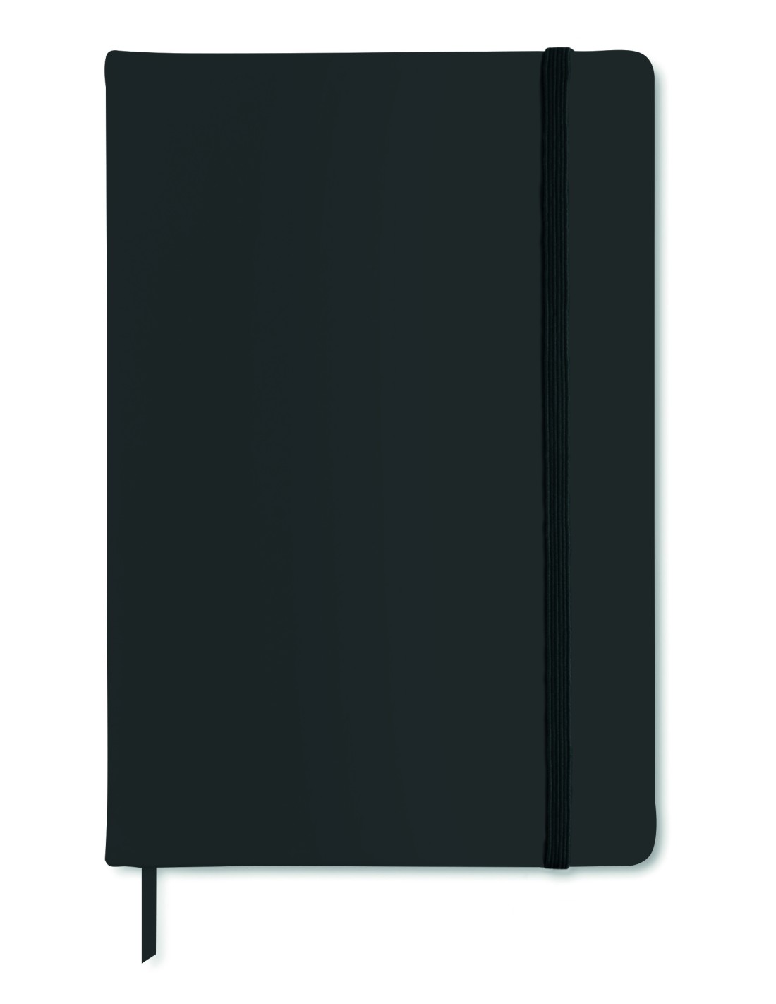 Notebook A6 con copertina rigida in PU. 192 pagine a righe (96 fogli). Chiusura con elastico in tono e nastro segnapagina. FSC®-certified | FSC MIX CREDIT, P7.1, FSC-C213206