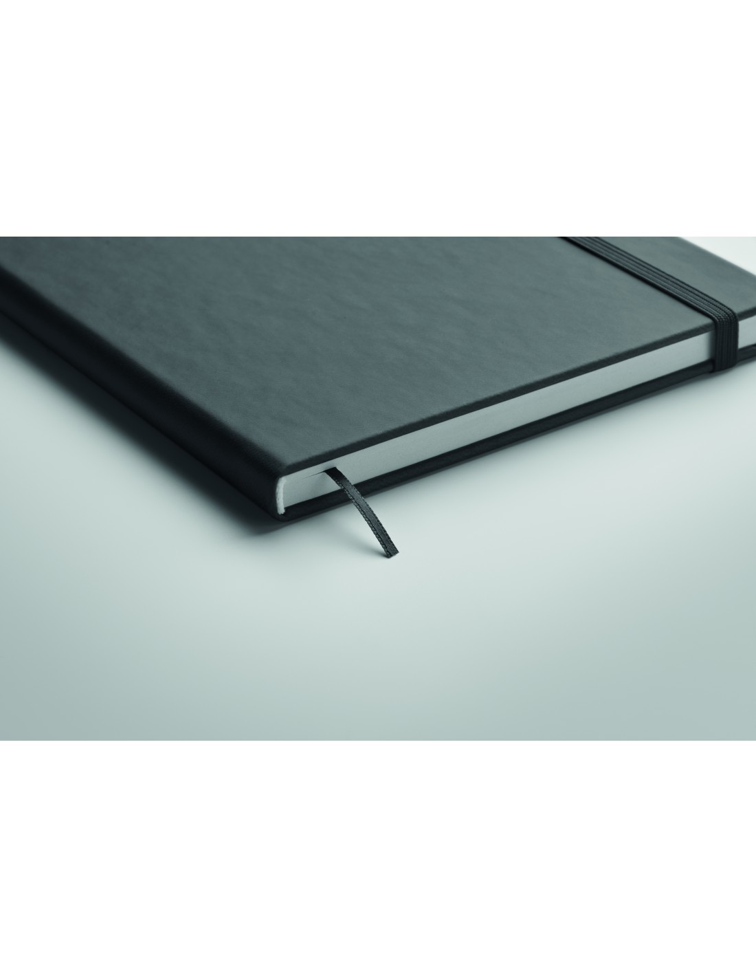Notebook A5 con copertina rigida in PU. Rilegato con custodia. 200 pagine a righe (100 fogli) in carta riciclata (80 gr/m²). Laccetto elastico di chiusura e nastro segnapagina abbinati. Prodotto in UE.