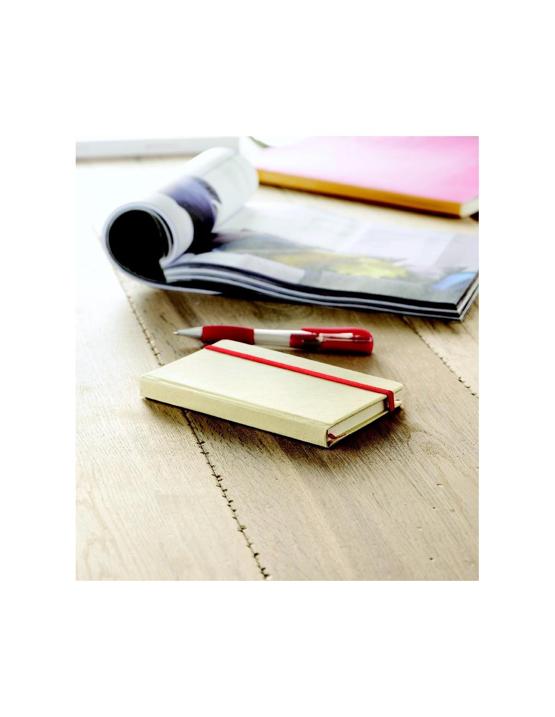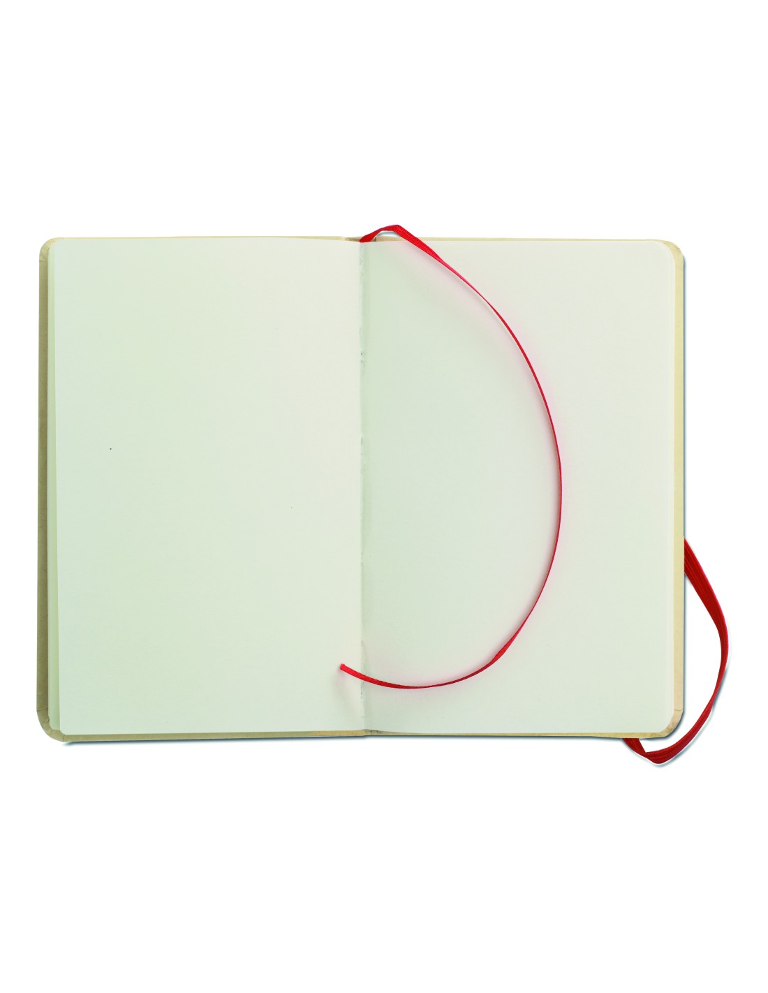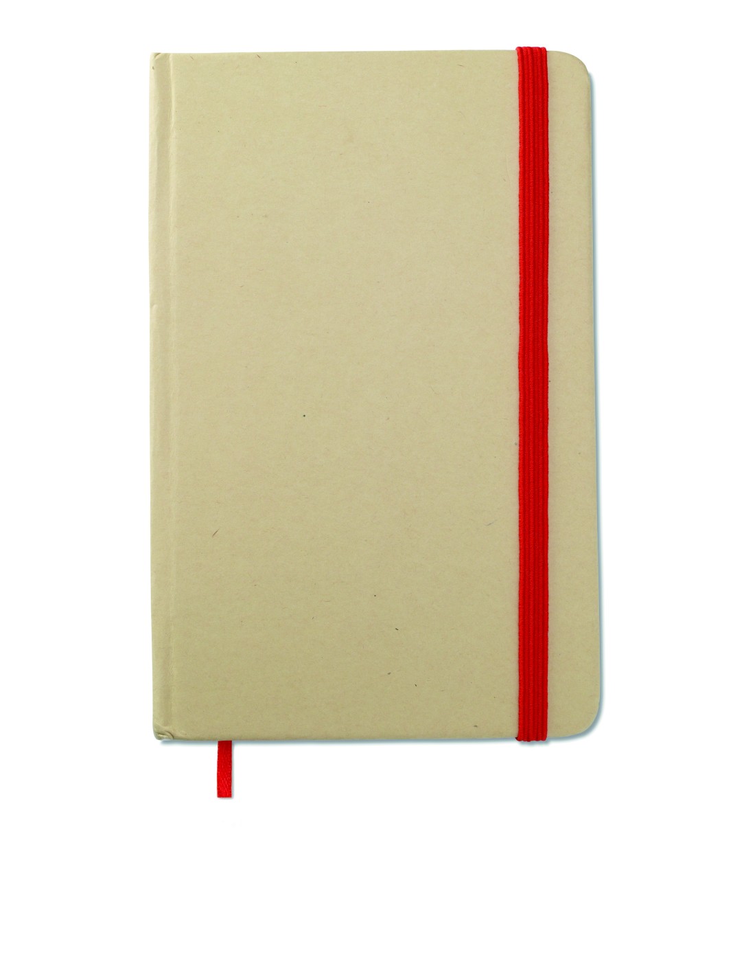 Notebook A5 in poliestere riciclato post consumo al 60% e copertina in PU al 40%. Rilegato con custodia. 256 pagine a righe in carta riciclata da 70 g/m² (128 fogli). Con 2 segnapagina in nastro di poliestere.