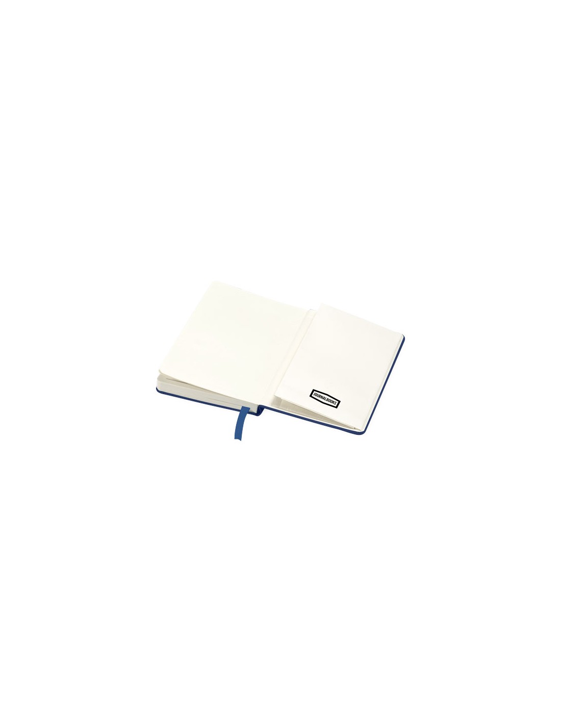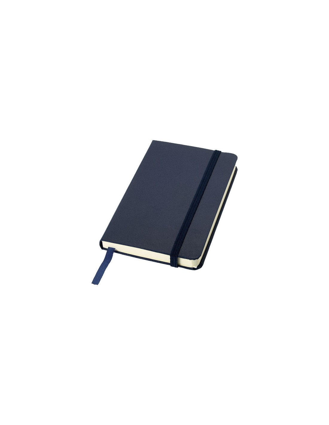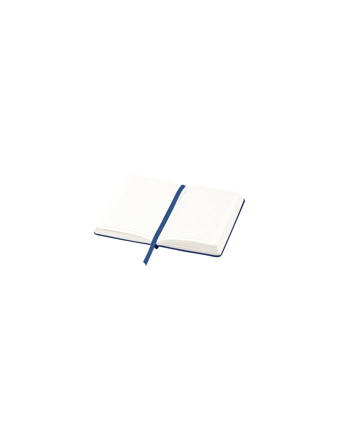 Blocco note in formato A5 con cover in tessuto RPET. Include 80 fogli di carta riciclata da 70 g/m² a righe, con asola portapenna e nastro segnalibro.