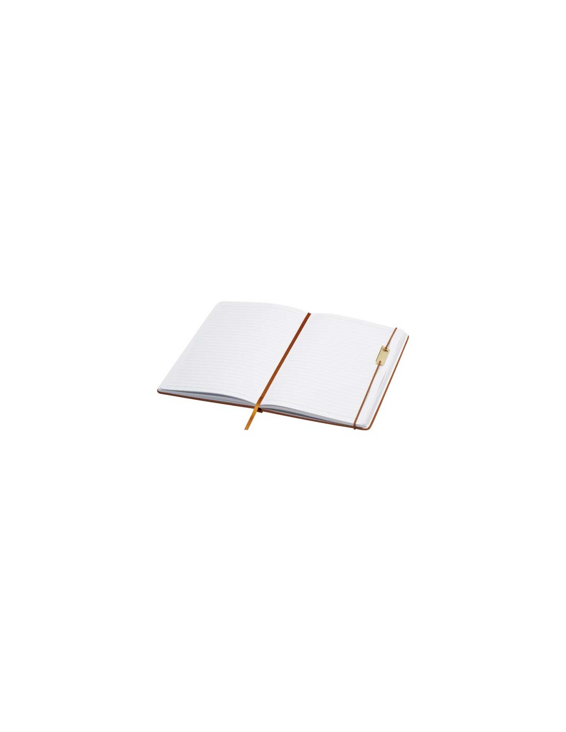 L'agenda formato A5 Slyk presenta una copertina in cartone resistente con angoli arrotondati e cuciture visibili sul dorso per un aspetto artigianale e naturale. All'interno contiene 32 fogli di carta color crema da 70 g/m². Il formato senza data comprende quattro sezioni per pagina, ideali per...
