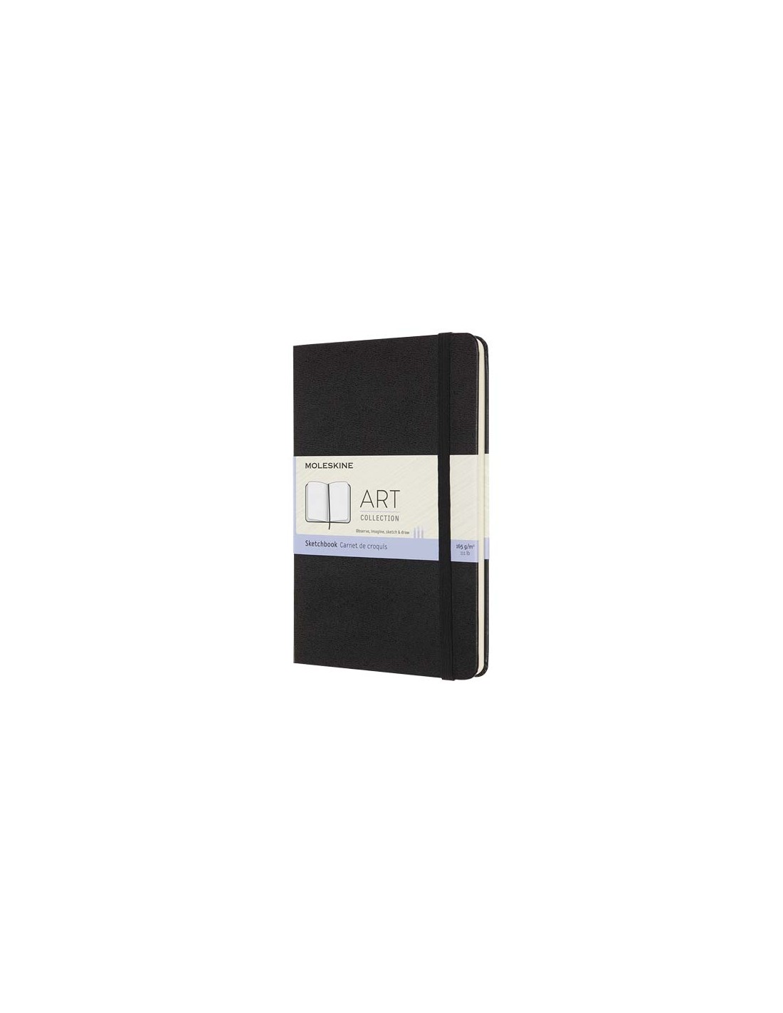 Il quaderno per schizzi formato medio Moleskine è rilegato in cartone, con copertina con angoli arrotondati e carta di alta qualità priva di acidi. Il quaderno per schizzi è dotato di un segnalibro, di una chiusura con elastico e di una tasca interna espandibile che contiene la storia di Moleskine.