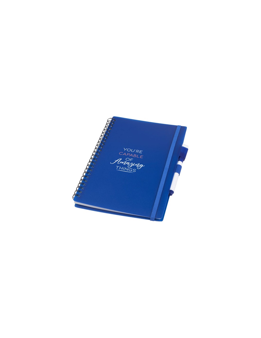 Blocco note in materiale ecosostenibile per ridurre l'utilizzo della carta e salvaguardare l'ambiente. Dopo aver preso appunti, disegnato, raccolto le idee, le pagine possono essere riutilizzate cancellando quello che si è scritto con la gomma presente sulla penna. Le pagine possono anche essere ripulite utilizzando un normale panno in tessuto (non incluso). Contiene 20 fogli (40 pagine), per metà punteggiati e per metà bianchi e un pennarello con inchiostro nero.