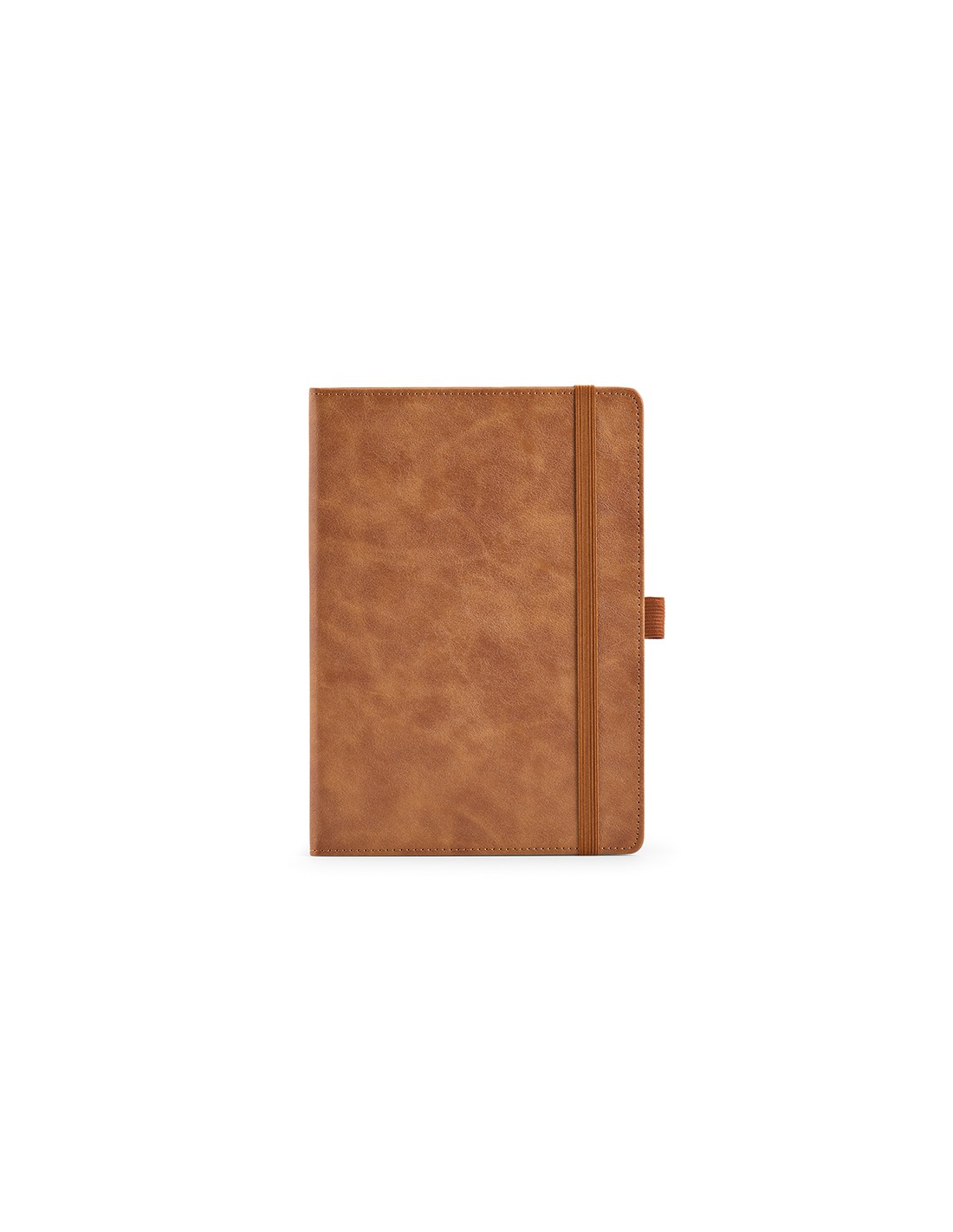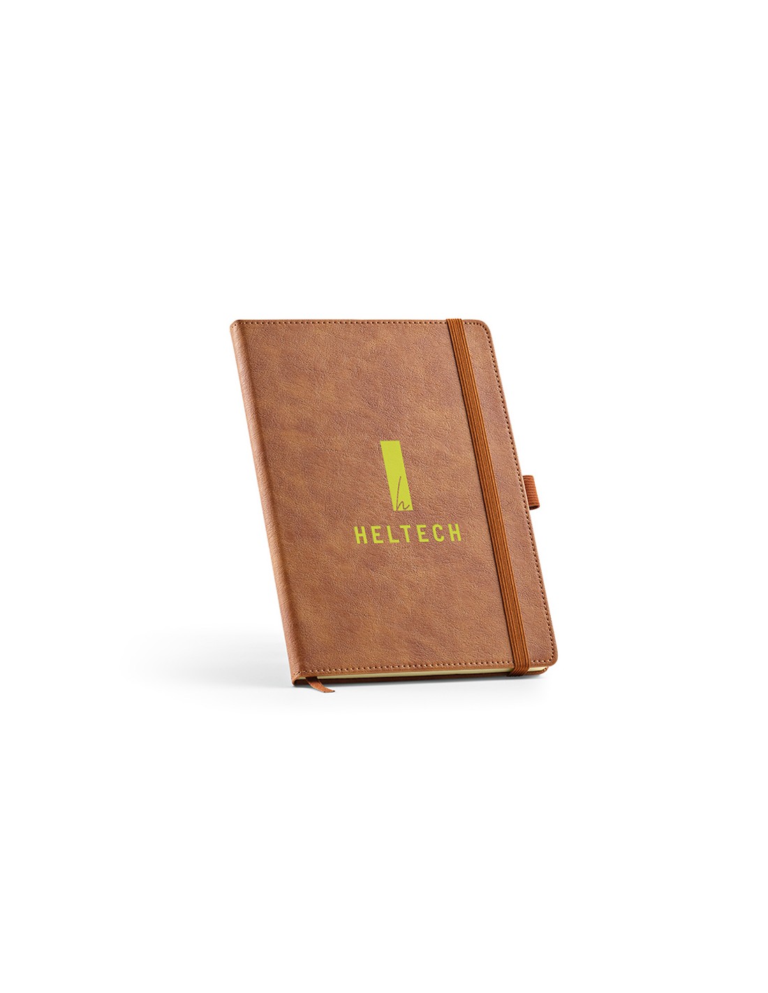 Notebook Hawthorne A5 in PU riciclato. Include 196 pagine lisce certificata FSC da 70 gsm con spazio per data e numero di pagina, dove creatività e funzionalità si incontrano. Dotato di elastico verticale, portapenne e segnalibro coordinato. Fornito in una custodia kraft individuale.
