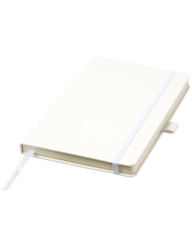 Notebook A5 con copertina rigida in PU riciclato post consumo al 40% e copertina in PU al 60%. Rilegato con custodia. 160 pagine a righe, carta riciclata da 70 g/m² (80 fogli). Segnapagina in nastro di poliestere di colore abbinato.
