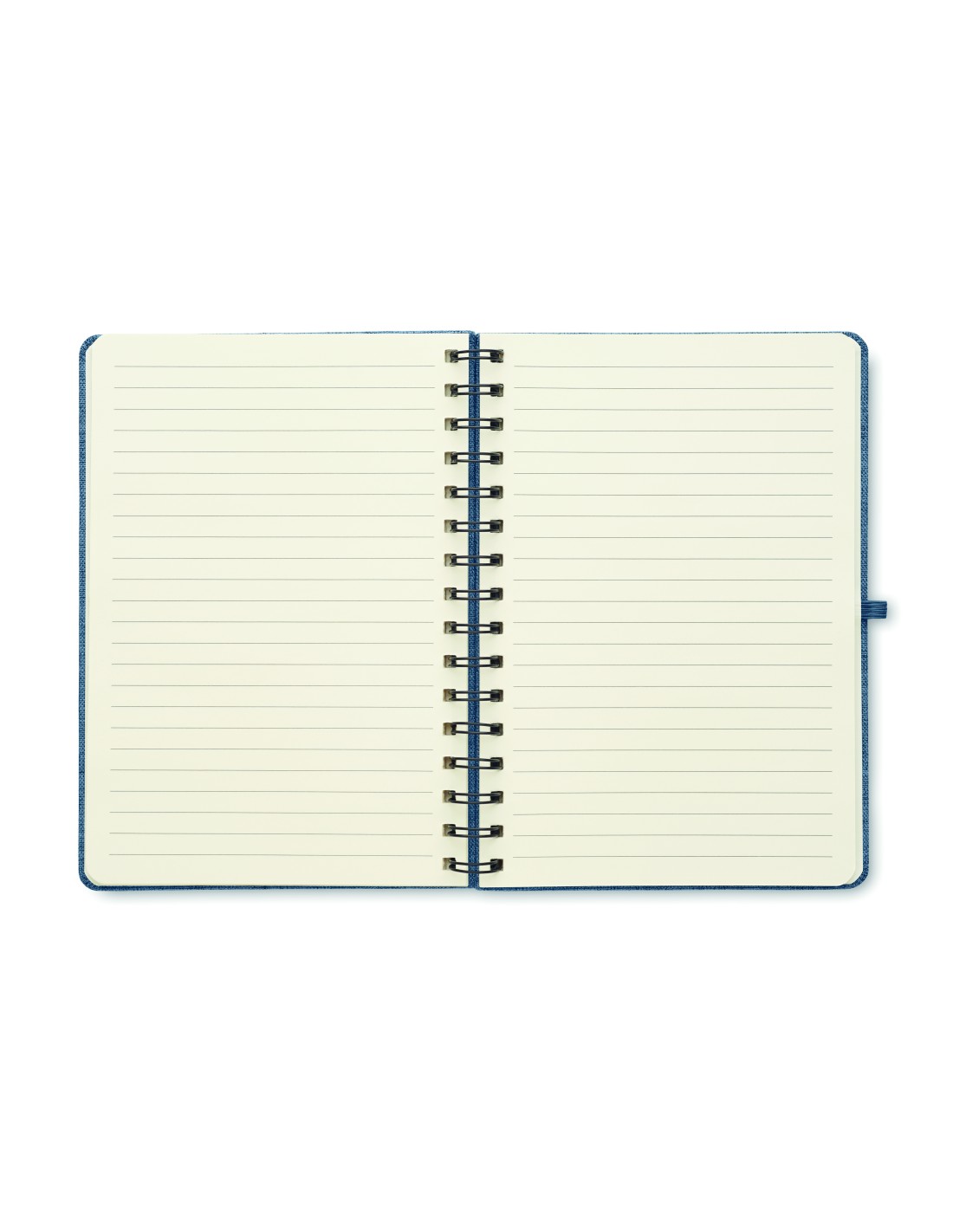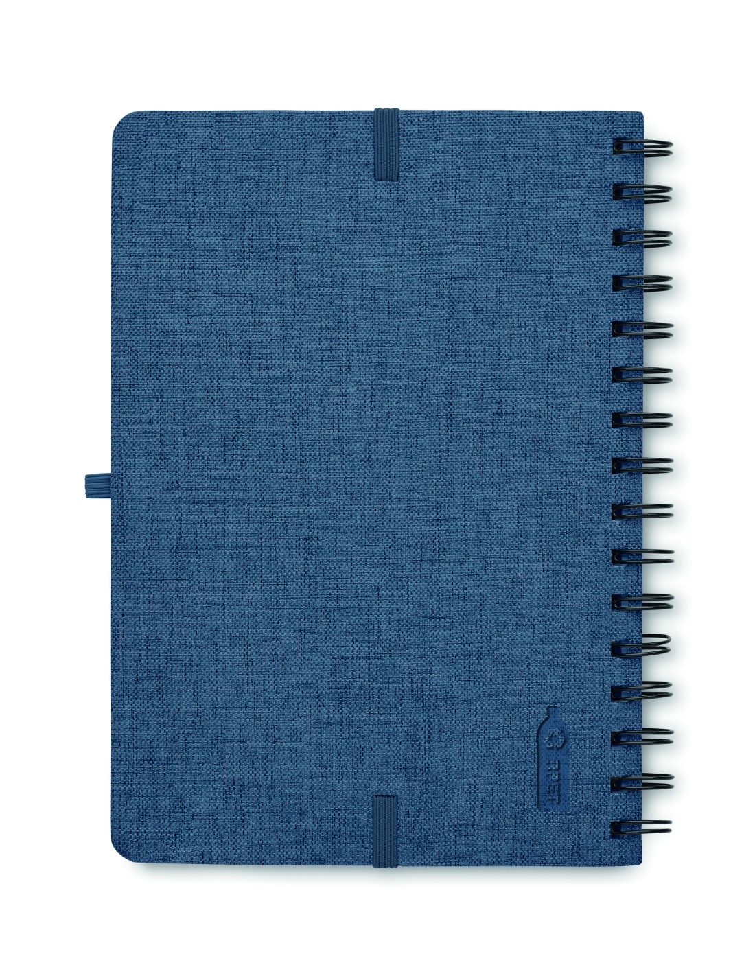 Notebook A5 con copertina rigida in RPET 600D con funzione di supporto per smartphone. Doppio filo. 160 pagine a righe (80 fogli). carta riciclata da 70 g/m². Cinghia di chiusura elastica.