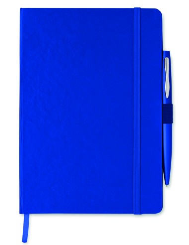 Notebook A5 con copertina rigida in sughero colorato. Rilegato con custodia. 192 fogli a righe (96 fogli). Cinturino di chiusura elastico, segnalibro a nastro e portapenne elastico.