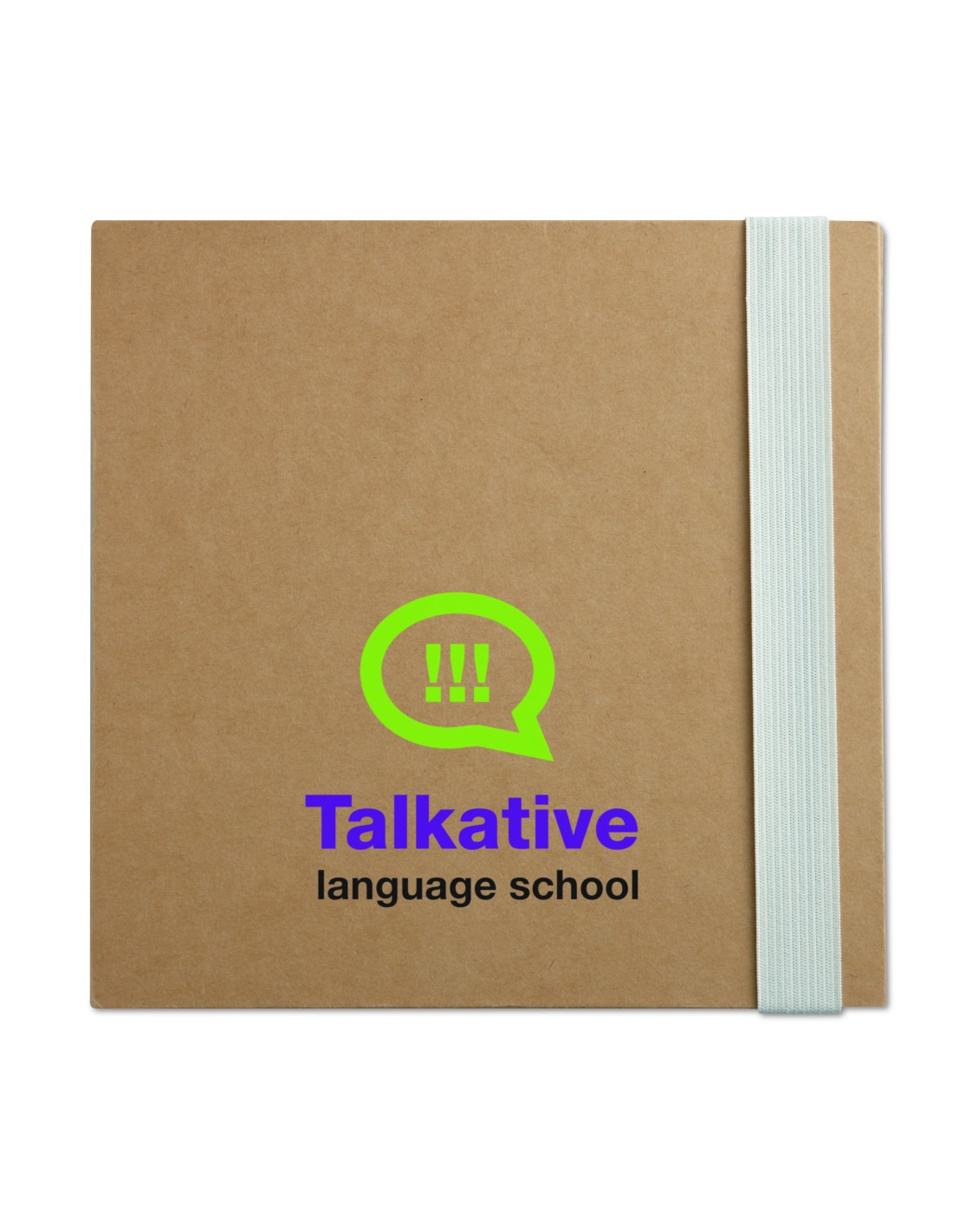 Quaderno con copertina in cartone riciclato. Blocco note da 100 fogli semplici. Blocco note adesivo da 3 pezzi. Blocchi per appunti adesvi gialli grandi e medi e 5 segnapagina in colori assortiti. Penna a sfera a pulsante abbinata con fusto in carta. Porta penna. Chiusura con fascia elastica. FSC®-certified | FSC MIX, P7.1, FSC-C213206