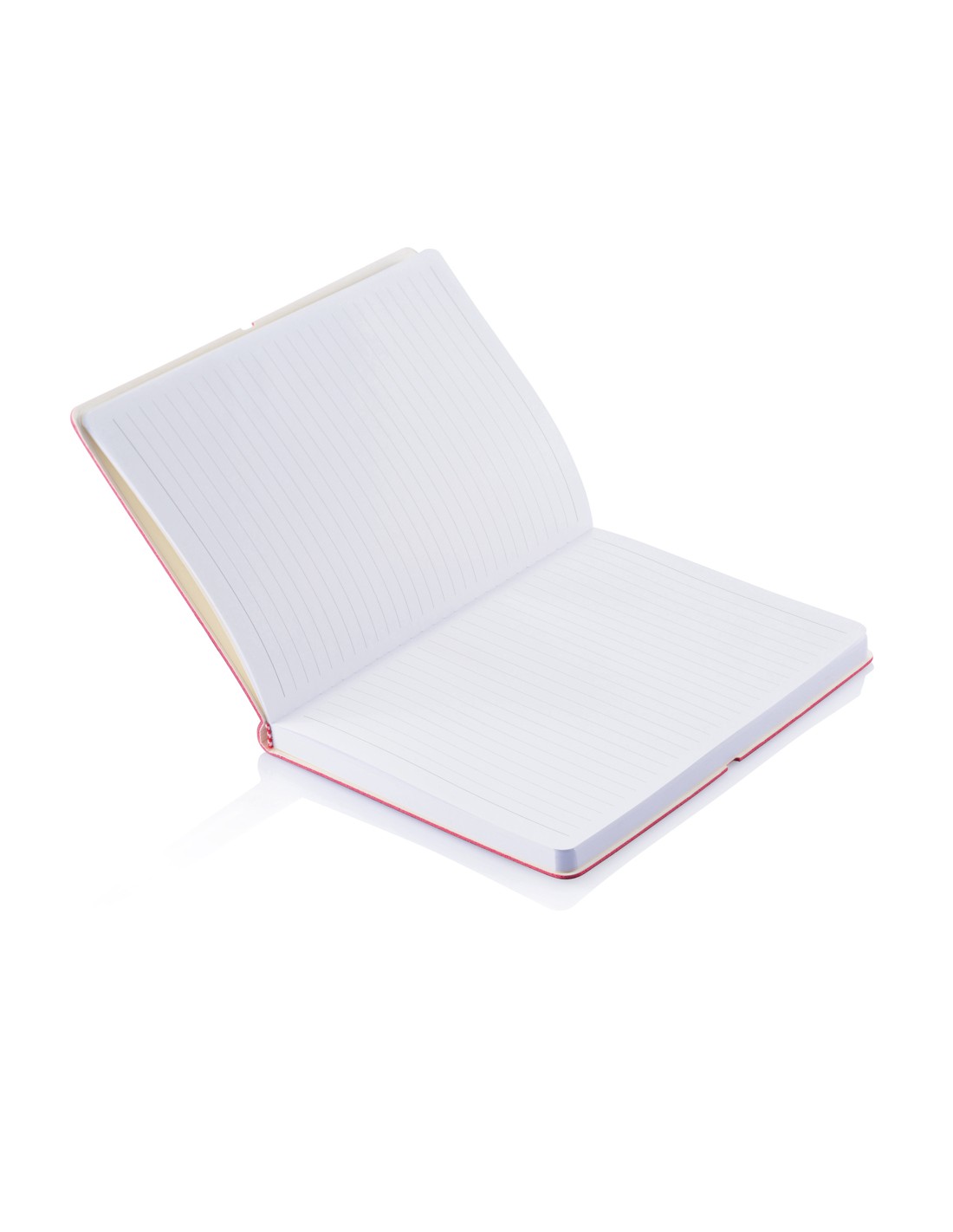Notebook A5 con copertina rigida in PU e tasca frontale per il telefono. Rilegato con custodia. 160 pagine a righe in carta riciclata (80 fogli). Segnalibro a nastro abbinato. FSC®-certified | FSC MIX CREDIT, P7.1, FSC-C213206