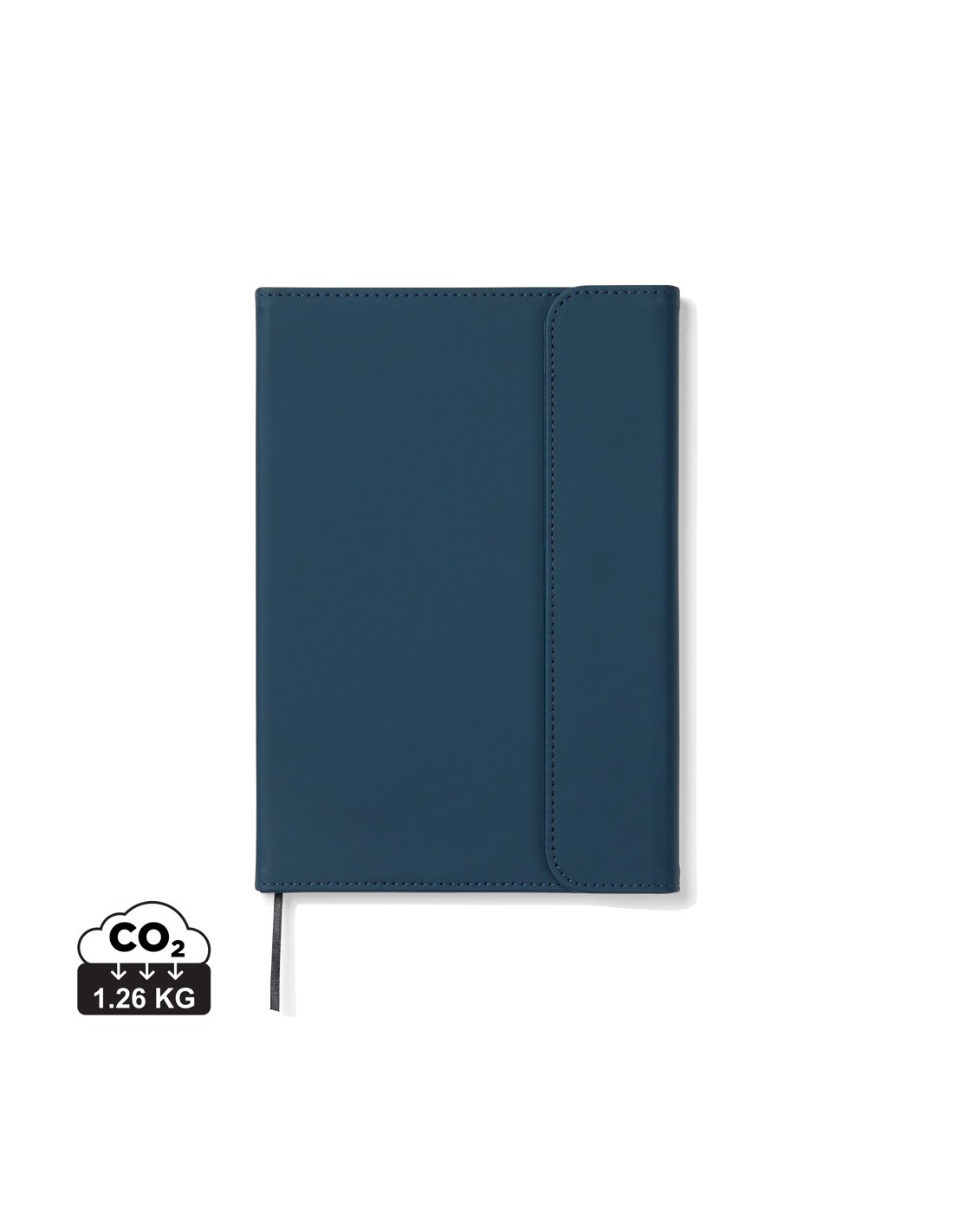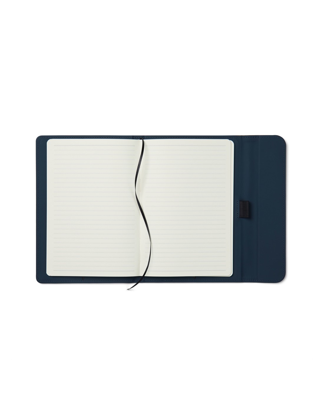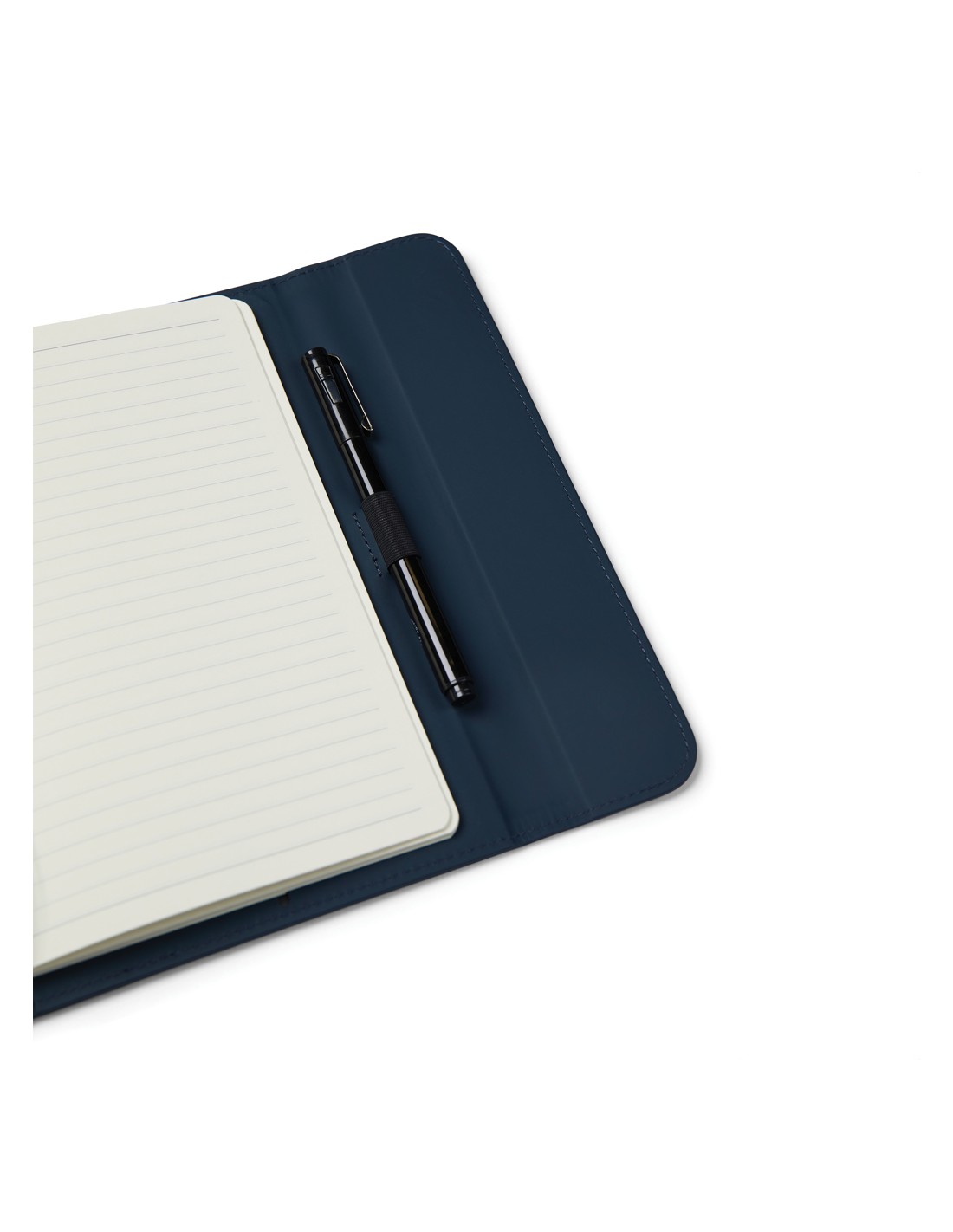 Elegante taccuino A5 dal design pulito. La copertina, realizzata in PU opaco riciclato al 30%, presenta una chiusura magnetica e un portapenne integrato. All'interno, 80 fogli/160 pagine di carta riciclata foderata da 70 g/m², adatta a tutte le esigenze per prendere appunti. L'inserto di carta può essere sostituito, consentendo un uso prolungato nel tempo. Certificata da GRS (Global Recycled Standard), la certificazione GRS garantisce che l'intera catena di approvvigionamento dei materiali riciclati sia certificata. Il contenuto totale di materiale riciclato si basa sul peso complessivo del prodotto. Questo prodotto contiene il 54% di carta certificata GRS e il 5% di PU riciclato GRS.