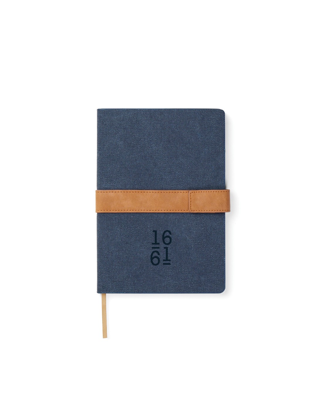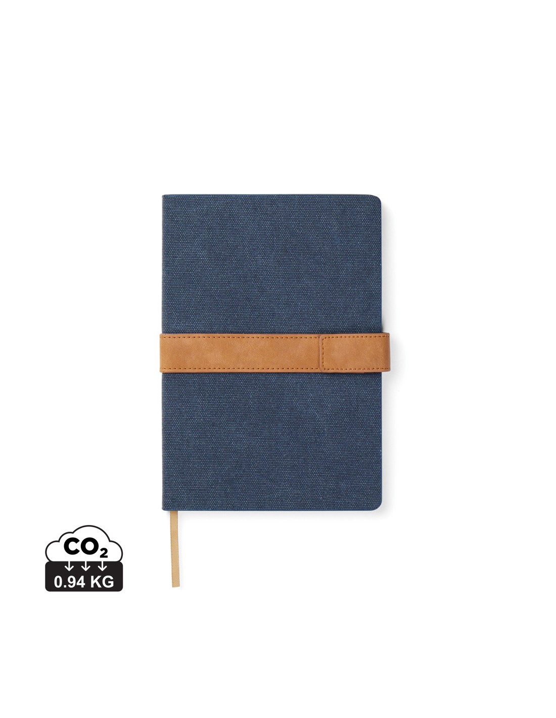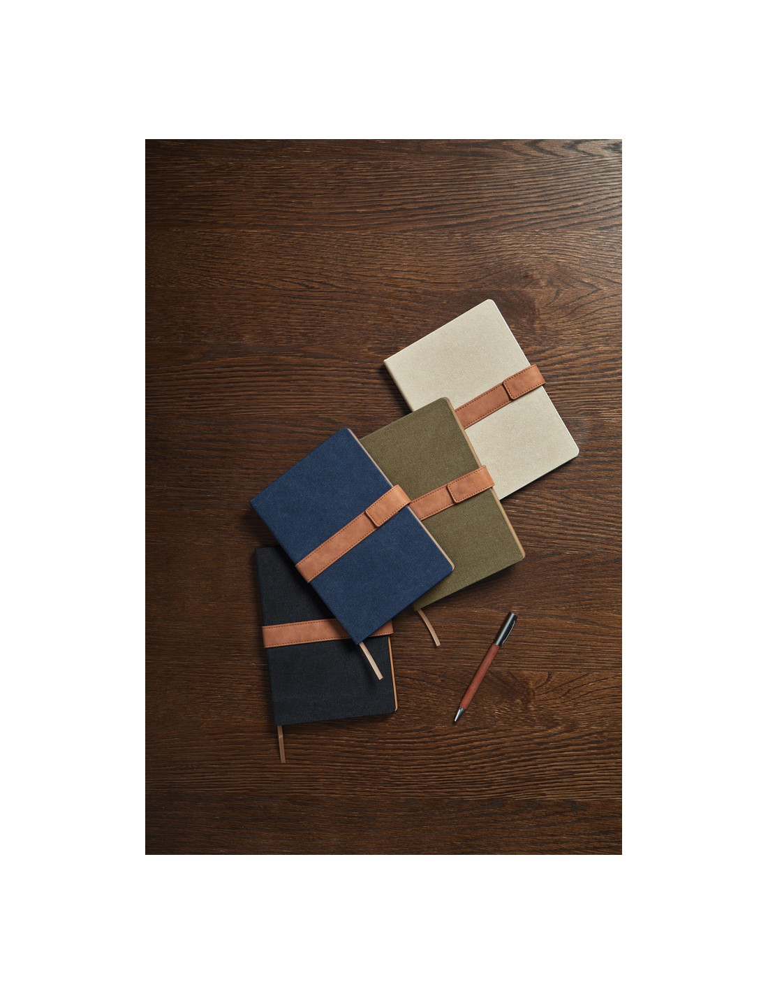 Prendete appunti con stile grazie al nostro taccuino A5, con copertina in tela e chiusura a calamita. Il taccuino contiene 80 fogli di carta interna riciclata da 80 g/m² con stampa a righe, perfetta per prendere appunti. Realizzato con il 75% di materiali riciclati certificati RCS (Recycled Claim Standard). La certificazione RCS garantisce una catena di approvvigionamento completamente certificata dei materiali riciclati utilizzati, sottolineando il nostro impegno per un approvvigionamento responsabile. Il contenuto totale di materiali riciclati del notebook si basa sul suo peso totale.