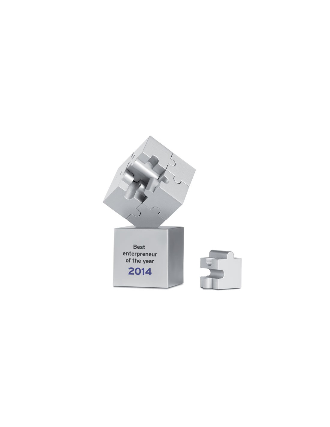 Puzzle 3D composto da 8 pezzi in metallo magnetico.