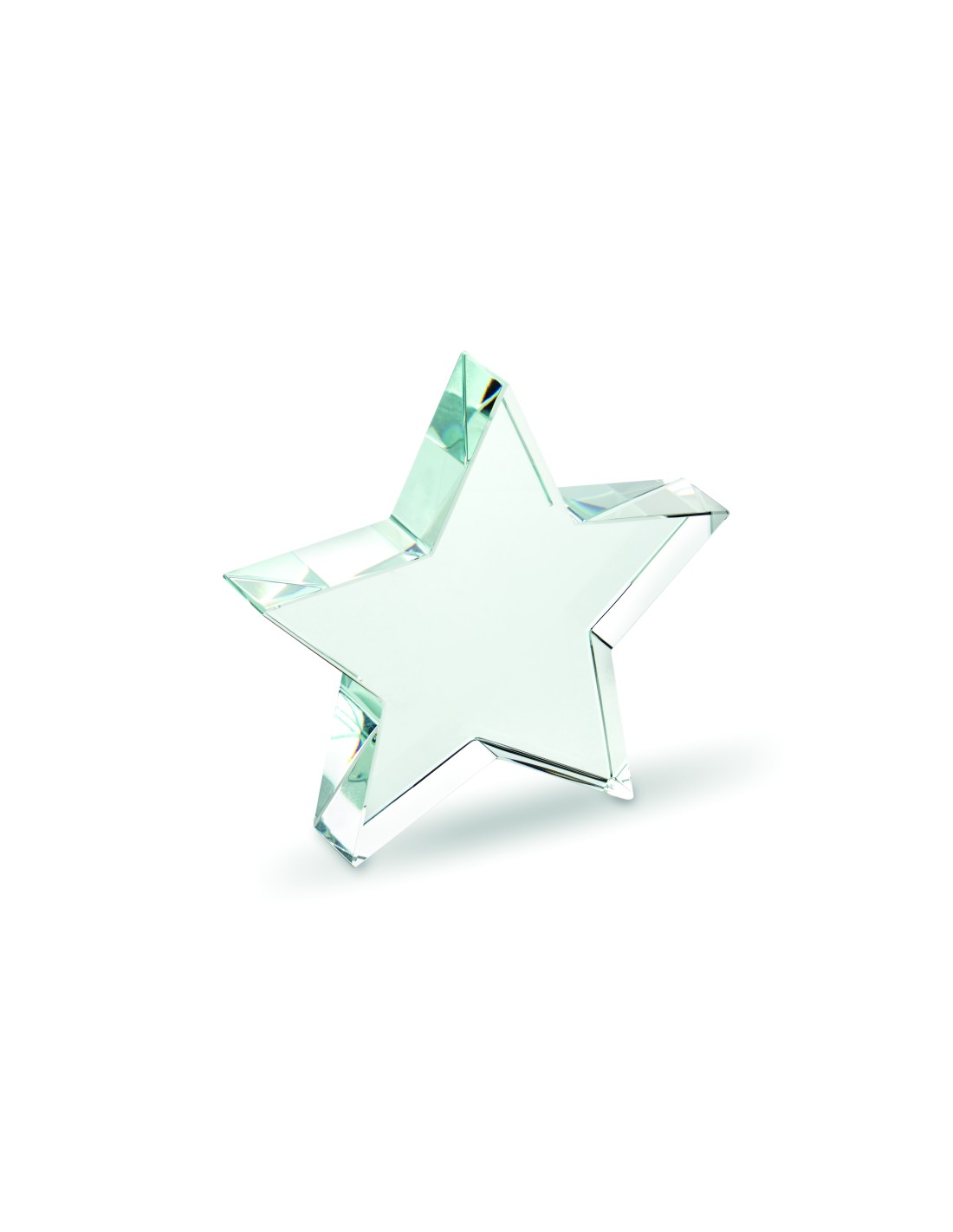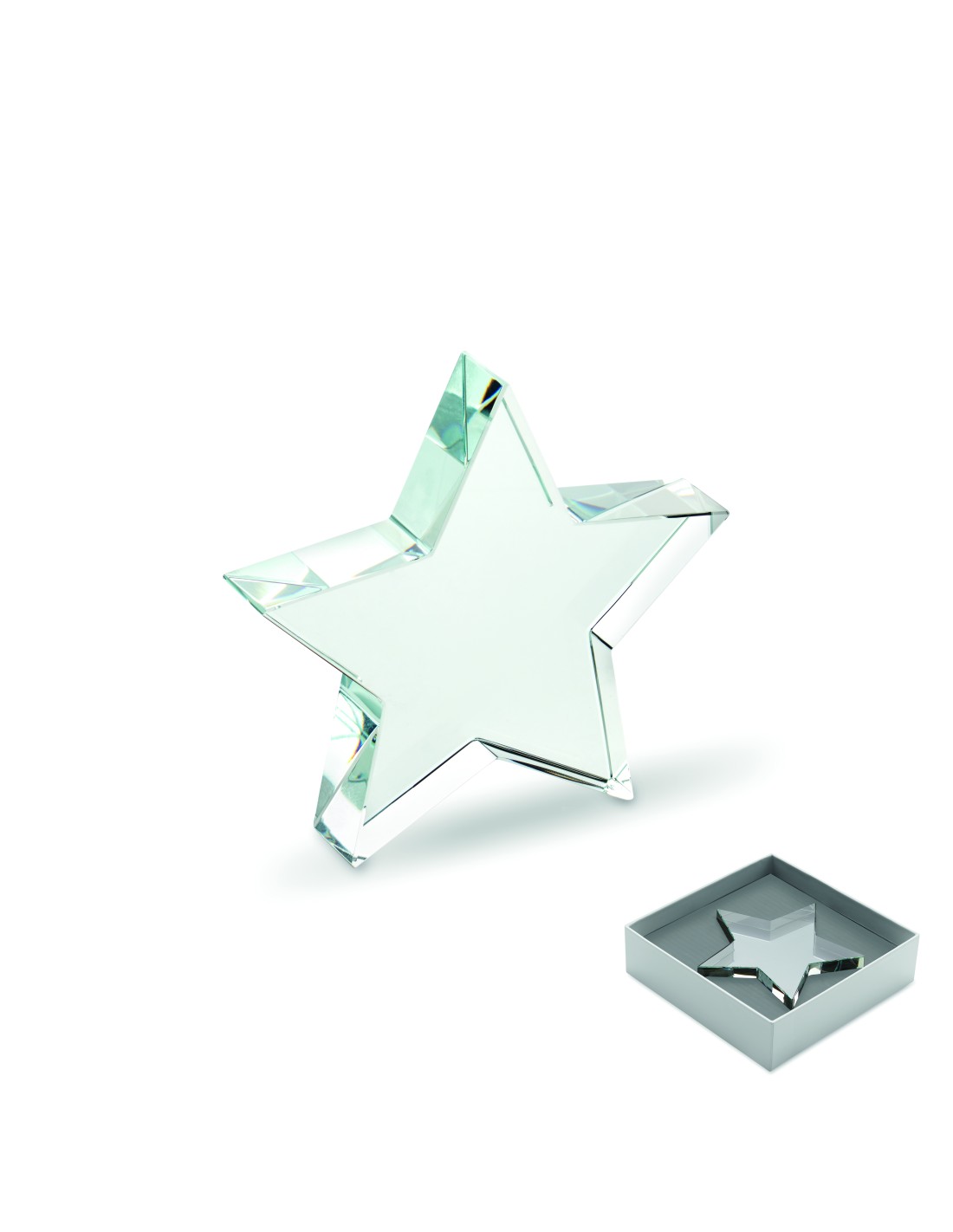 Premio o trofeo in vetro a forma di stella. Presentato in una confezione regalo.