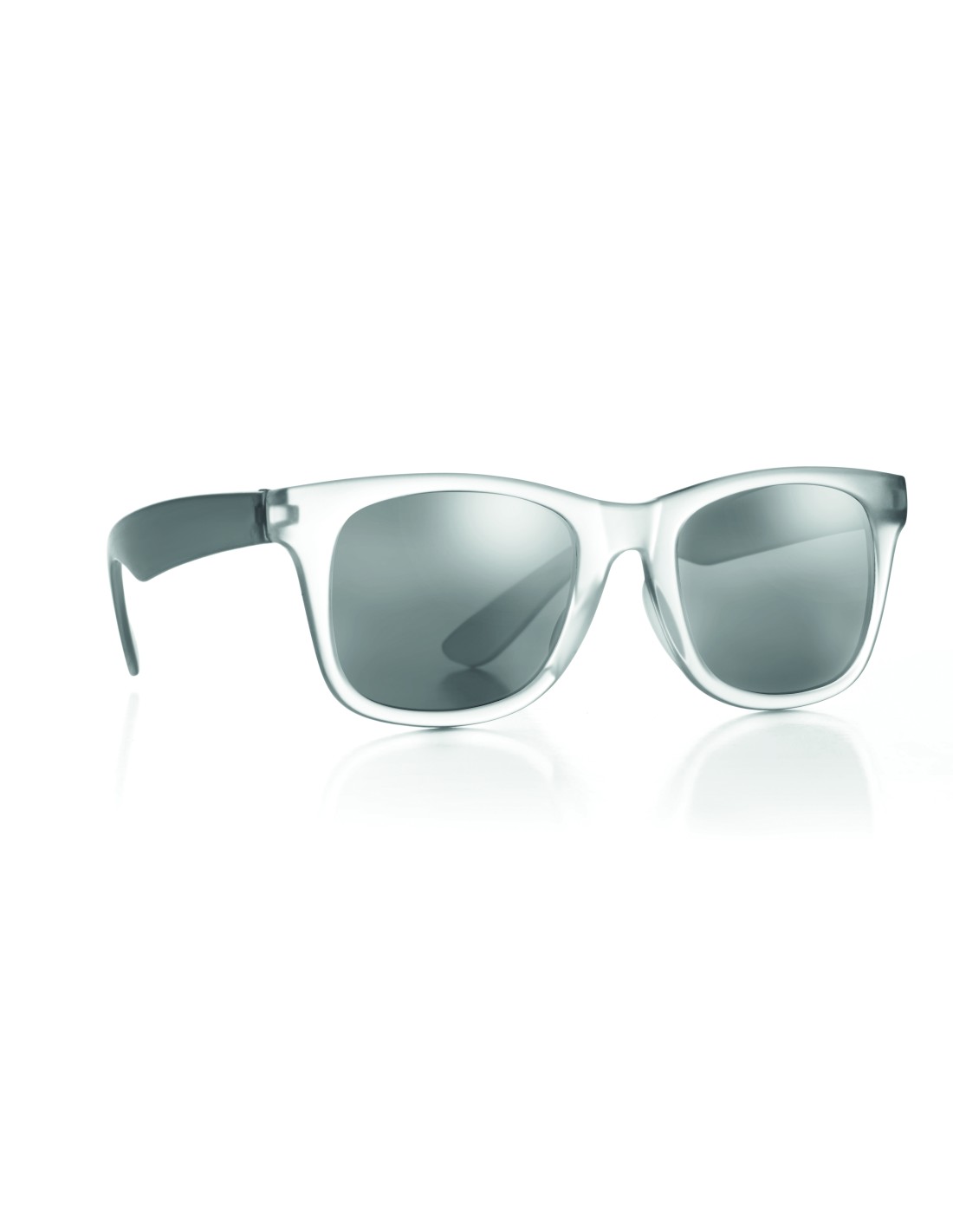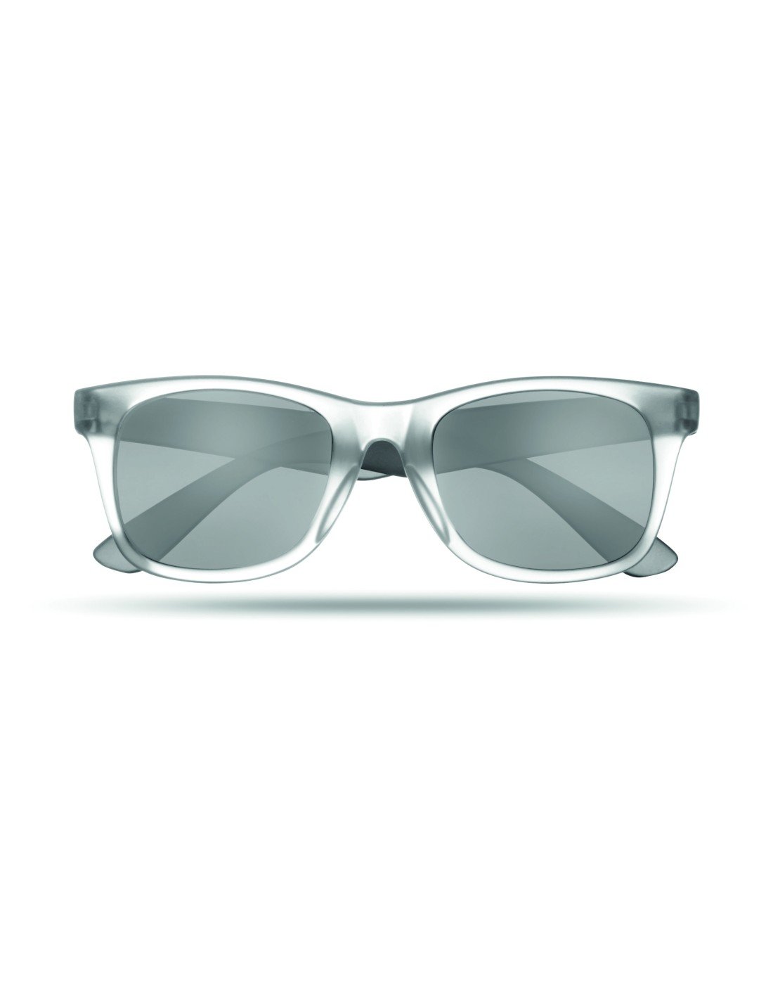 Occhiali da sole realizzati con montatura in PC trasparente riciclato certificato RCS. Con lenti colorate a specchio. Contenuto riciclato totale: 72% in base al peso totale dell'articolo. La certificazione RCS garantisce una filiera completamente certificata dei materiali riciclati. Le lenti sono...