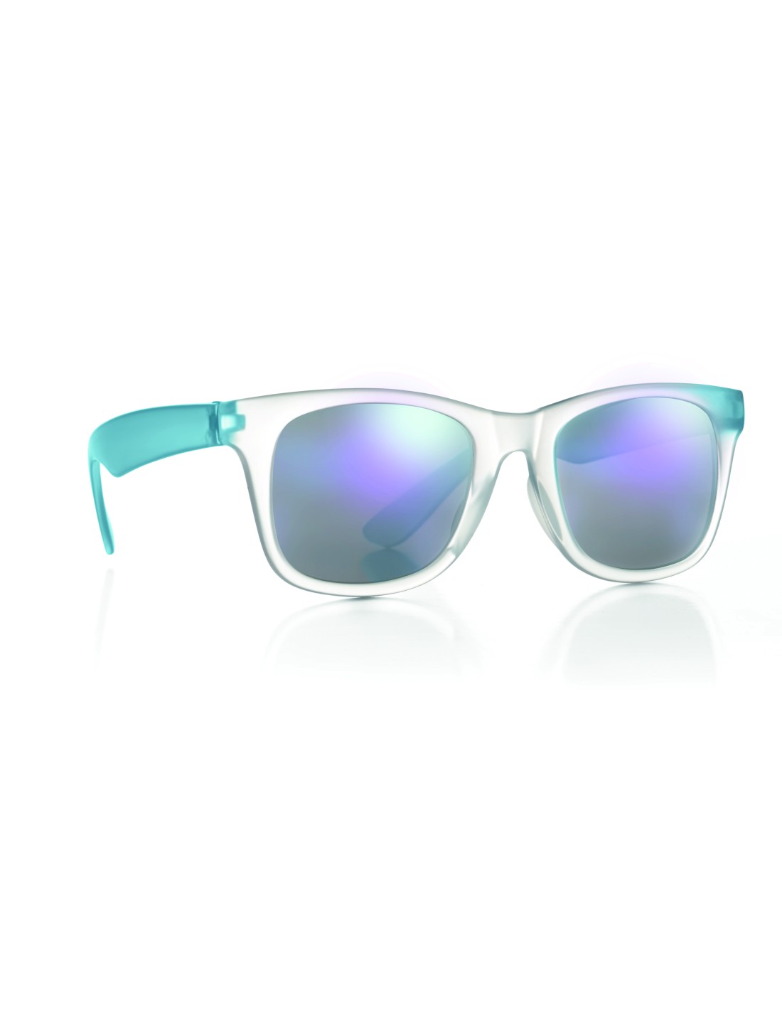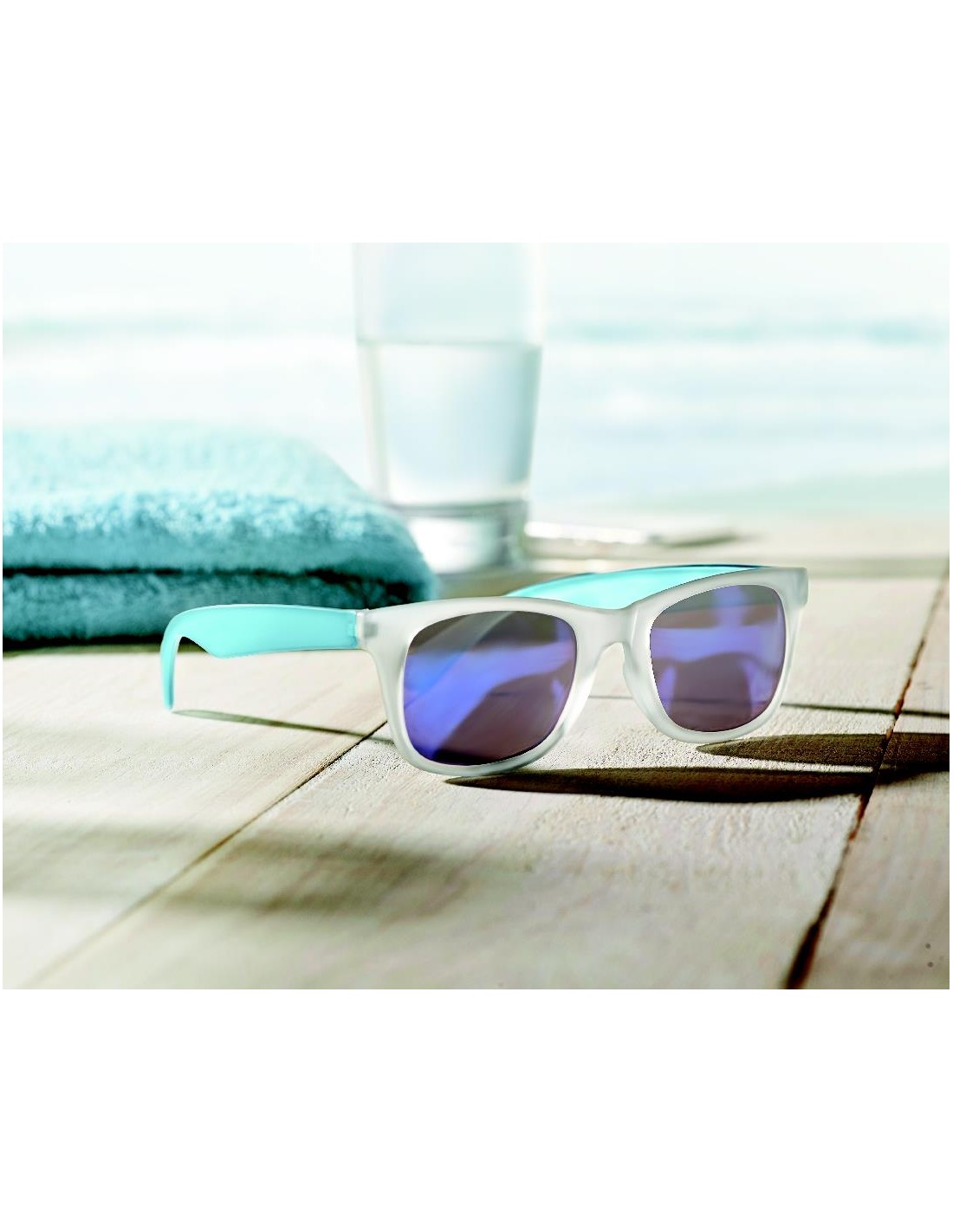 Occhiali da sole vintage con stanghette in bamboo e montatura in PC, lenti colorate specchiate. Protezione UV400.