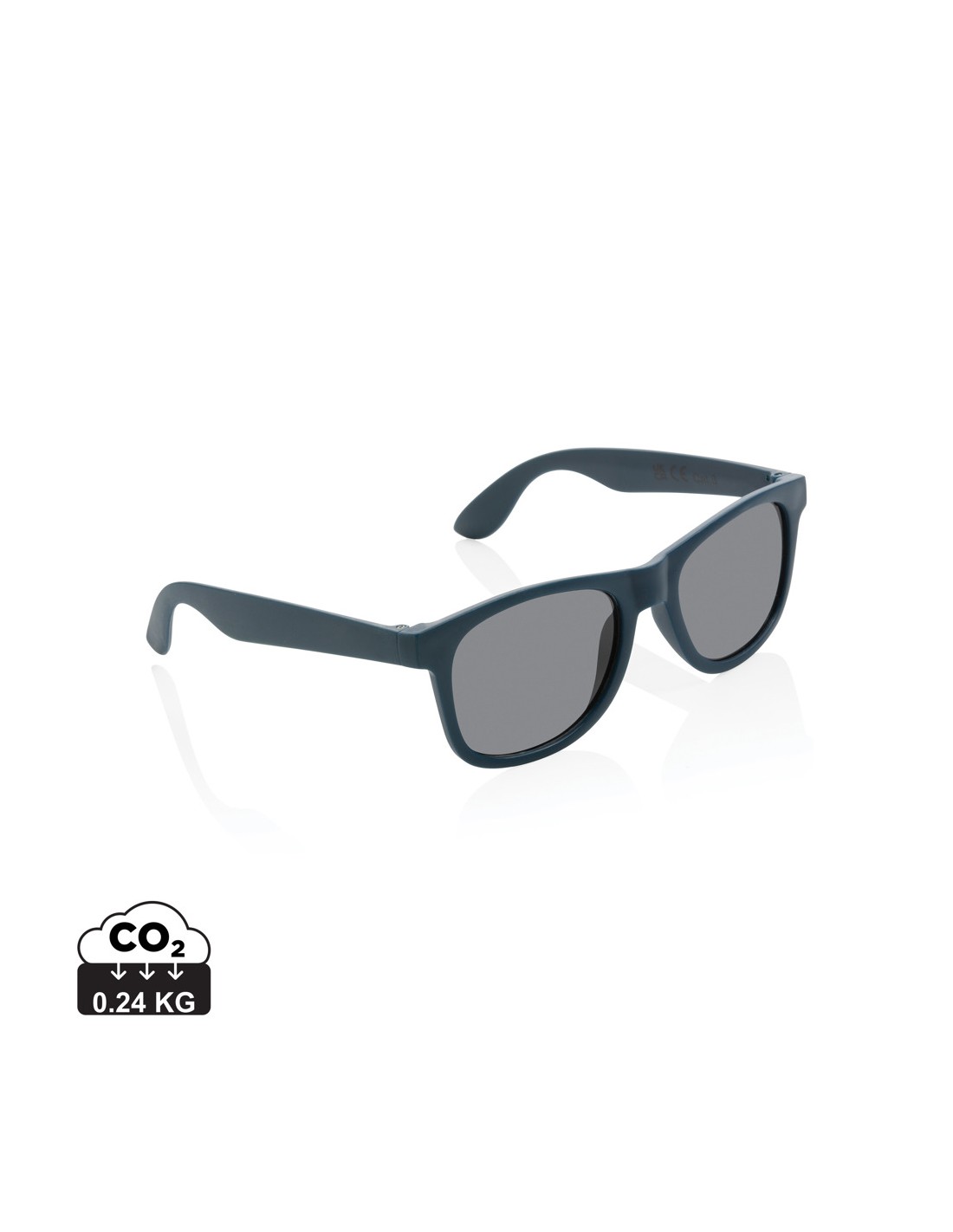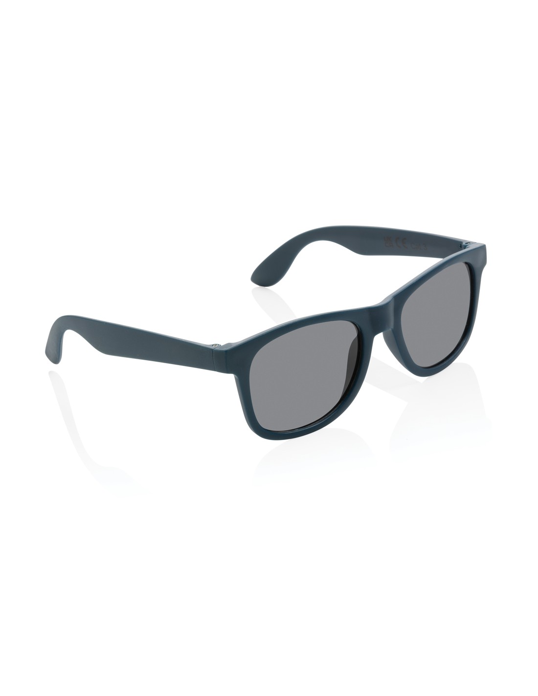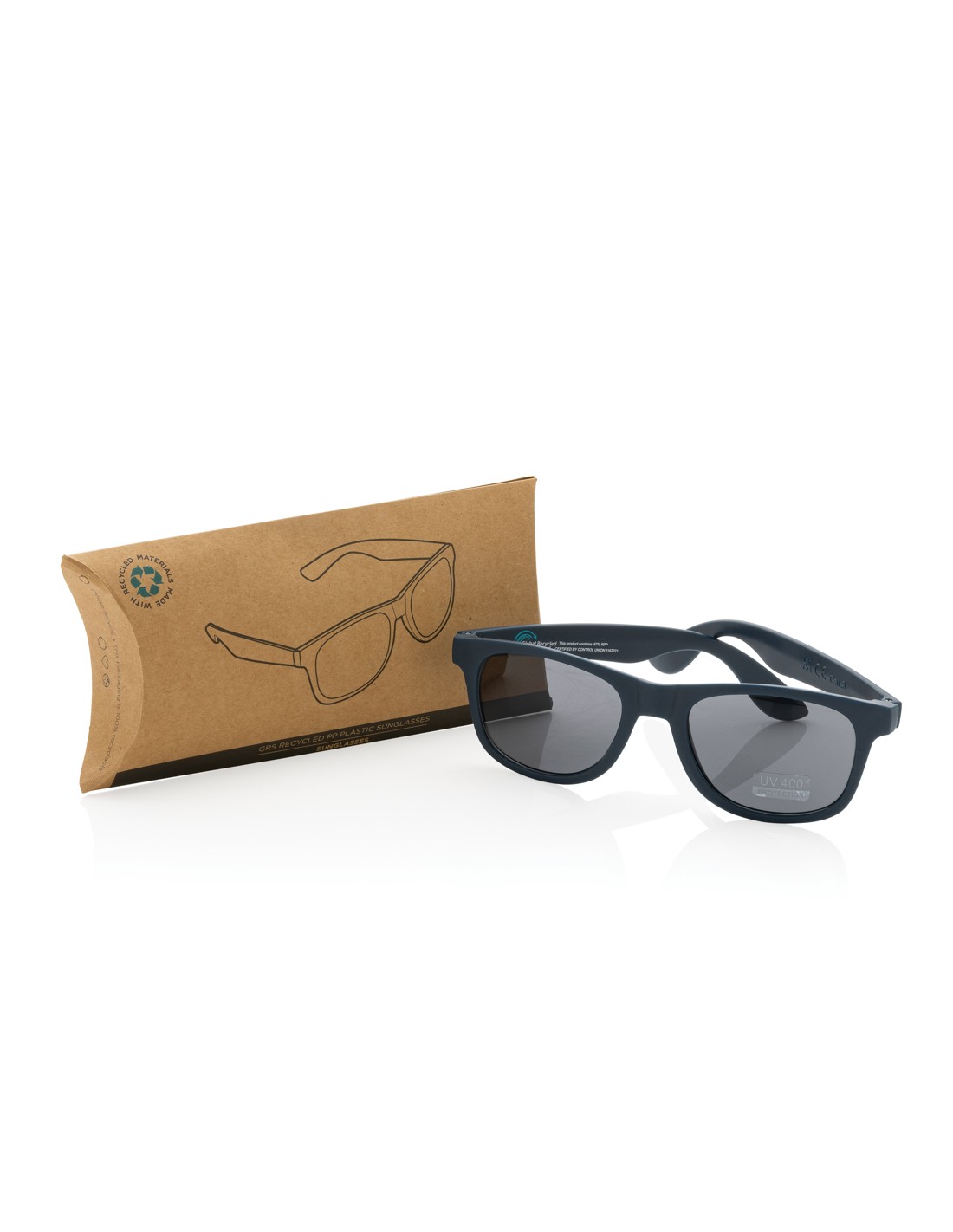 Occhiali da sole realizzati con montatura in PP riciclato certificato RCS. Il contenuto riciclato della montatura è al 100%. Contenuto totale riciclato: 66% in base al peso totale dell'articolo. La certificazione RCS garantisce una filiera completamente certificata dei materiali riciclati. Le lenti sono in acrilico smokey e sono conformi a EN ISO 12312-1, UV 400 e CAT 3. Confezionate in una custodia FSC®.