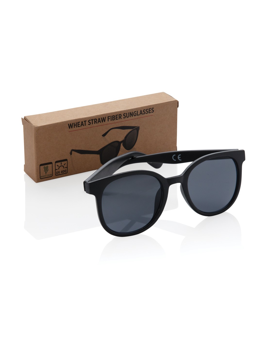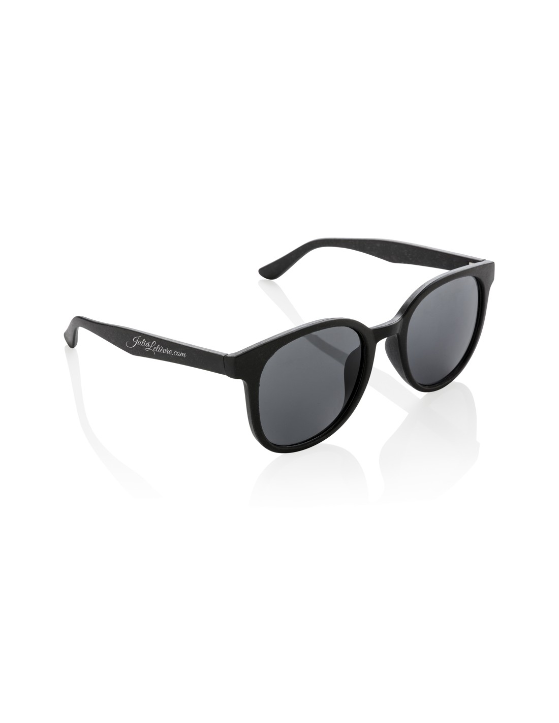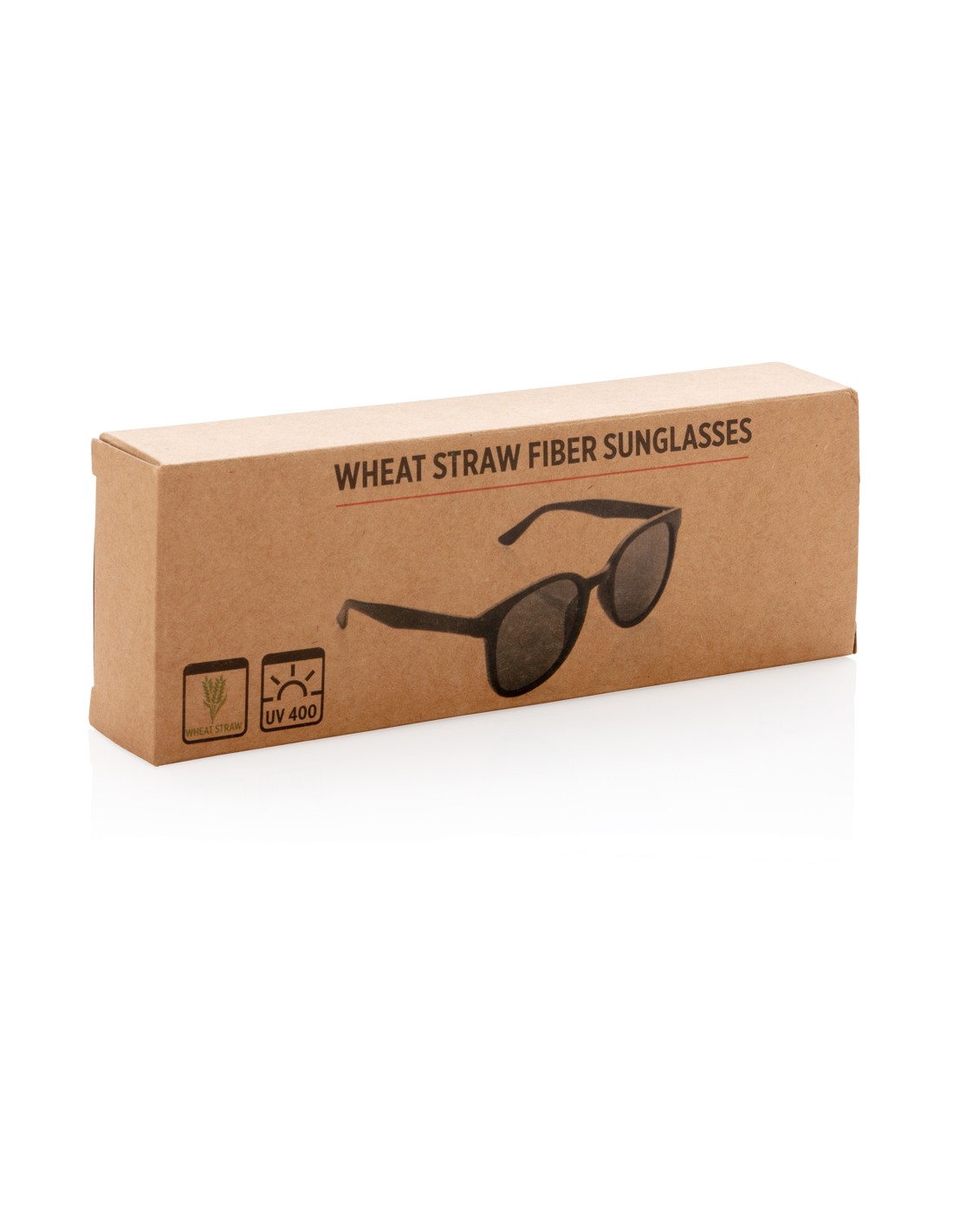 Occhiali da sole con montatura in fibra di grano. Confezionata in scatola di cartoncino. Protezione UV 400.