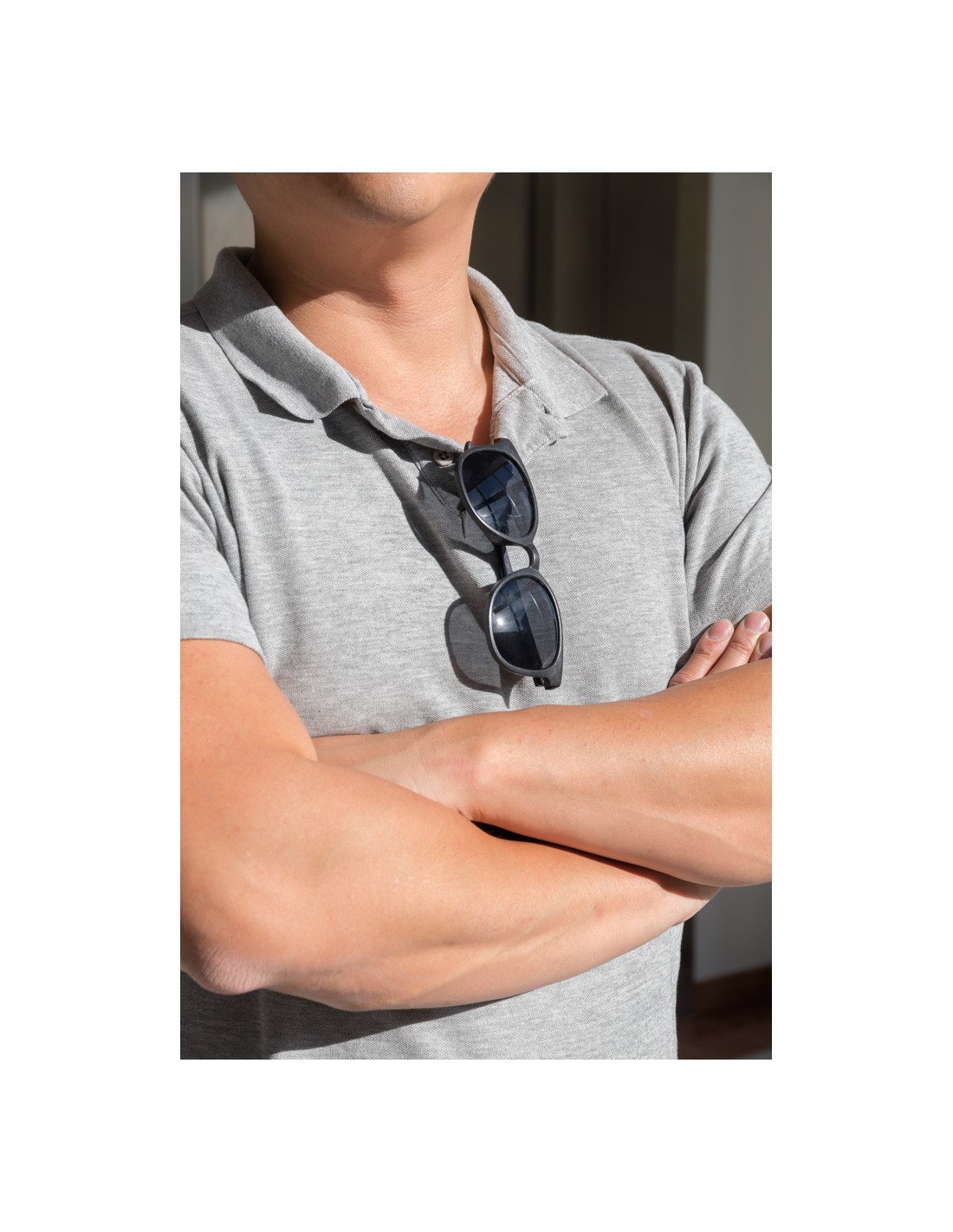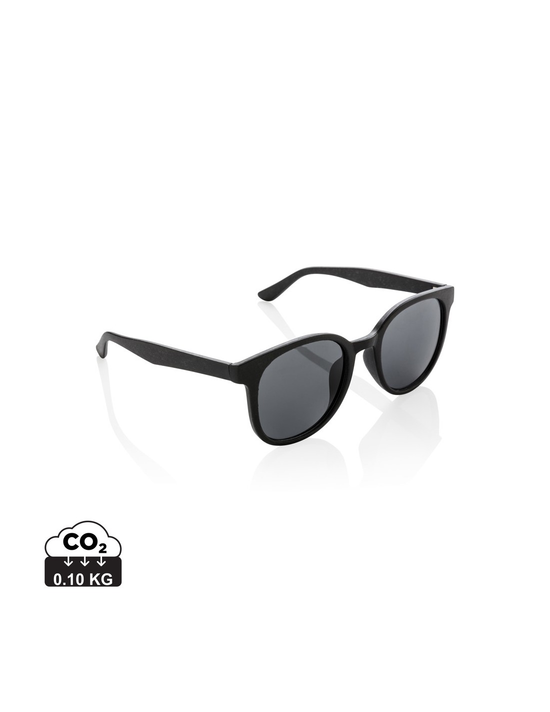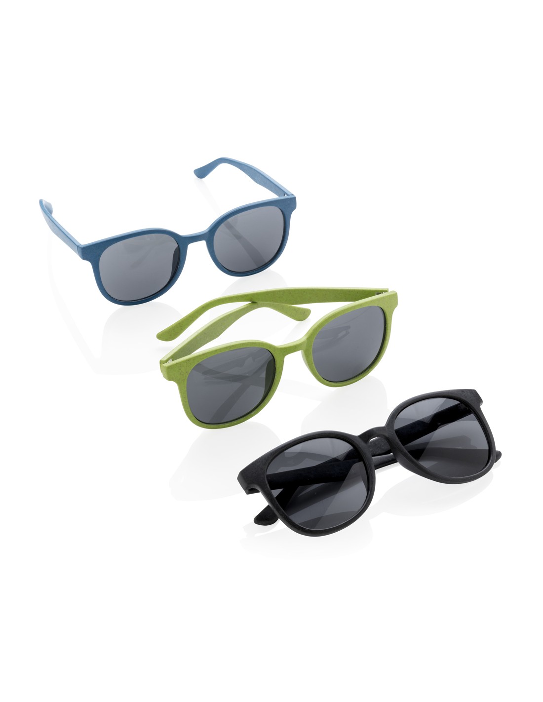 Occhiali da sole con montatura in fibra di grano. Confezionata in scatola di cartoncino. Protezione UV 400.