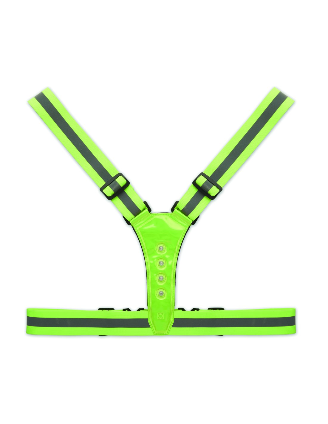 Cintura regolabile a 360° con 4 LED sul davanti e 4 LED sul retro e strisce argentate. In dotazione 2 batterie CR2032. Solo per uso promozionale.